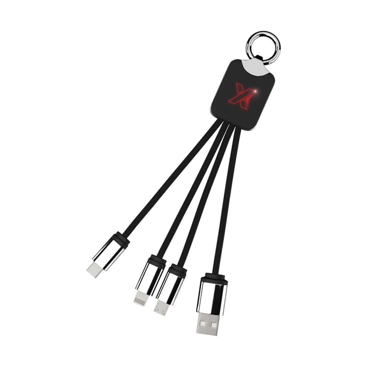 Kabel z podświetlonym logo 3w1 z brelokiem – SCX.design C15