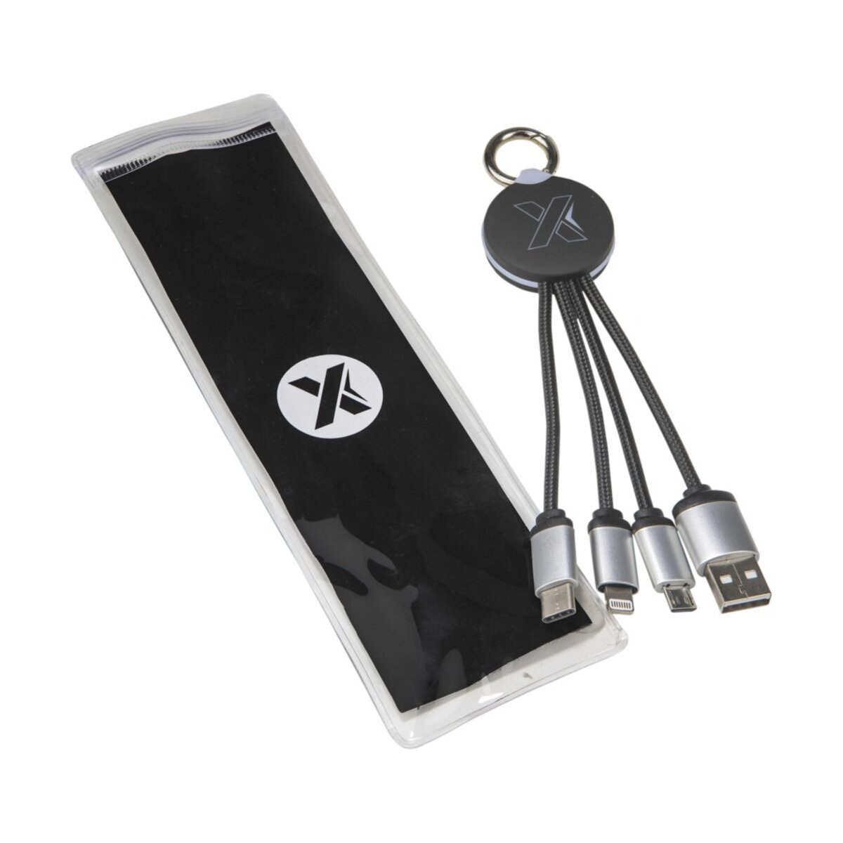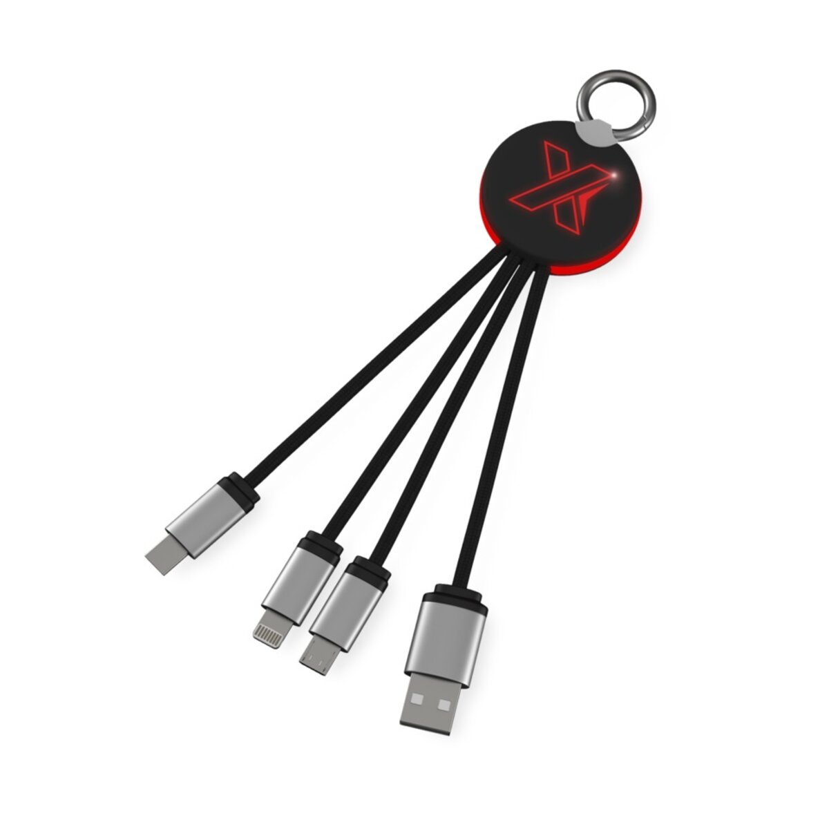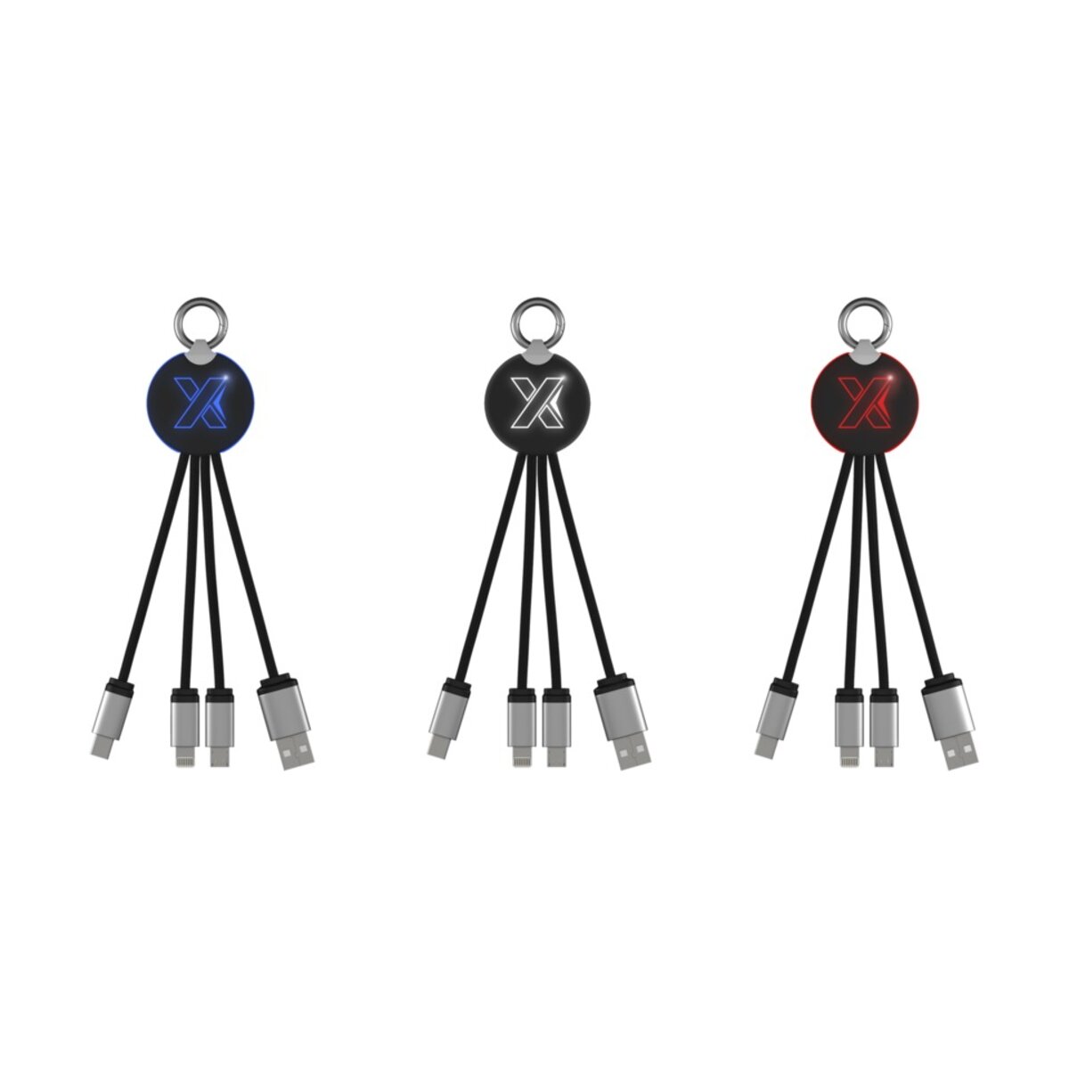 Kabel do ładowania z podświetlanym logo to idealne rozwiązanie dla wszystkich, którzy szukają wygodnego i praktycznego narzędzia pozwalającego jednoczesnie ładować do trzech urządzeń. Wyposażony w trzy złącza (USB typu C, Android, iPhone) i wykończony gumowanym i metalowym wykończeniem, ten kabel zapewni bezpieczne i szybkie ładowanie. Długość kabli (łącznie z wtyczkami) wynosi 10 cm, a opakowanie wykonane jest z papieru i tworzywa sztucznego z recyklingu. Nie czekaj i poczuj wygodę użytkowania tego wyjątkowego kabla do ładowania z podświetlanym logo.