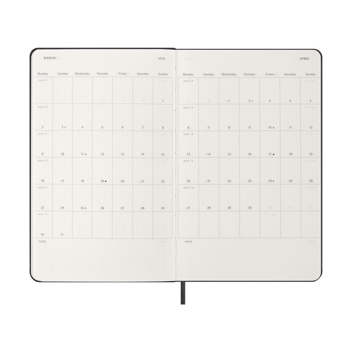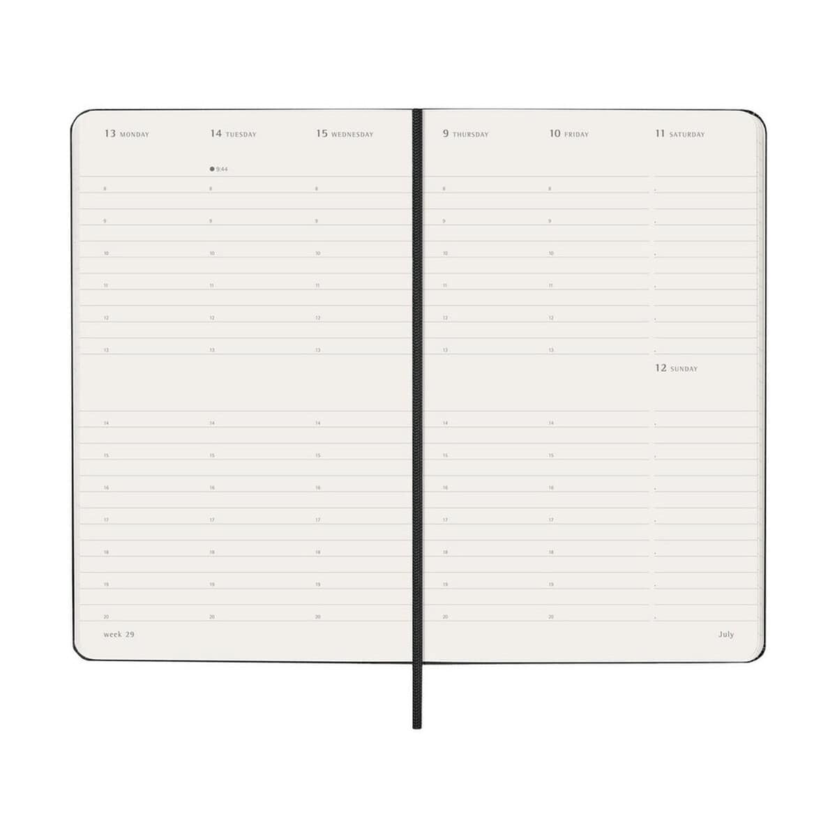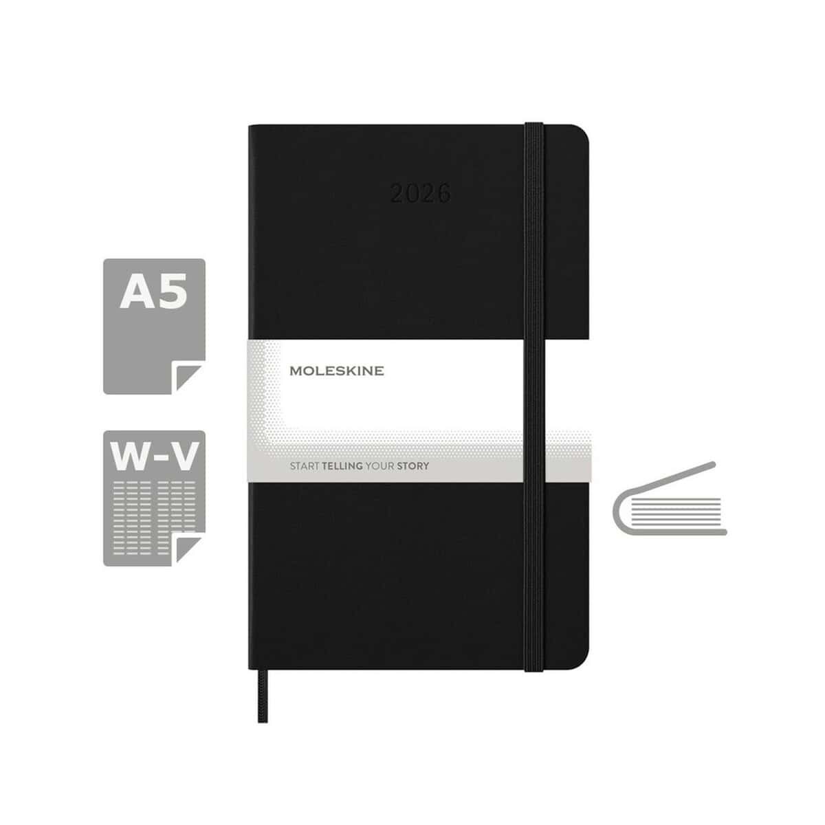 Kalendarz MOLESKINE to synonim prestiżu i funkcjonalności, który doskonale wpisuje się w potrzeby ludzi biznesu, kreatywnych freelancerów oraz wymagających studentów. Format ok. A5 (13 x 21 cm) i twarda okładka sprawiają, że notatnik jest odporny na codzienne wyzwania, a niewielka waga 278 g pozwala mieć go zawsze pod ręką – w torbie, plecaku czy eleganckiej aktówce. Tygodniowy, wertykalny układ 144 stron ułatwia planowanie spotkań z wyprzedzeniem, natomiast wbudowana zakładka i elastyczna opaska do zamykania chronią notatki przed zgubieniem. 📅
