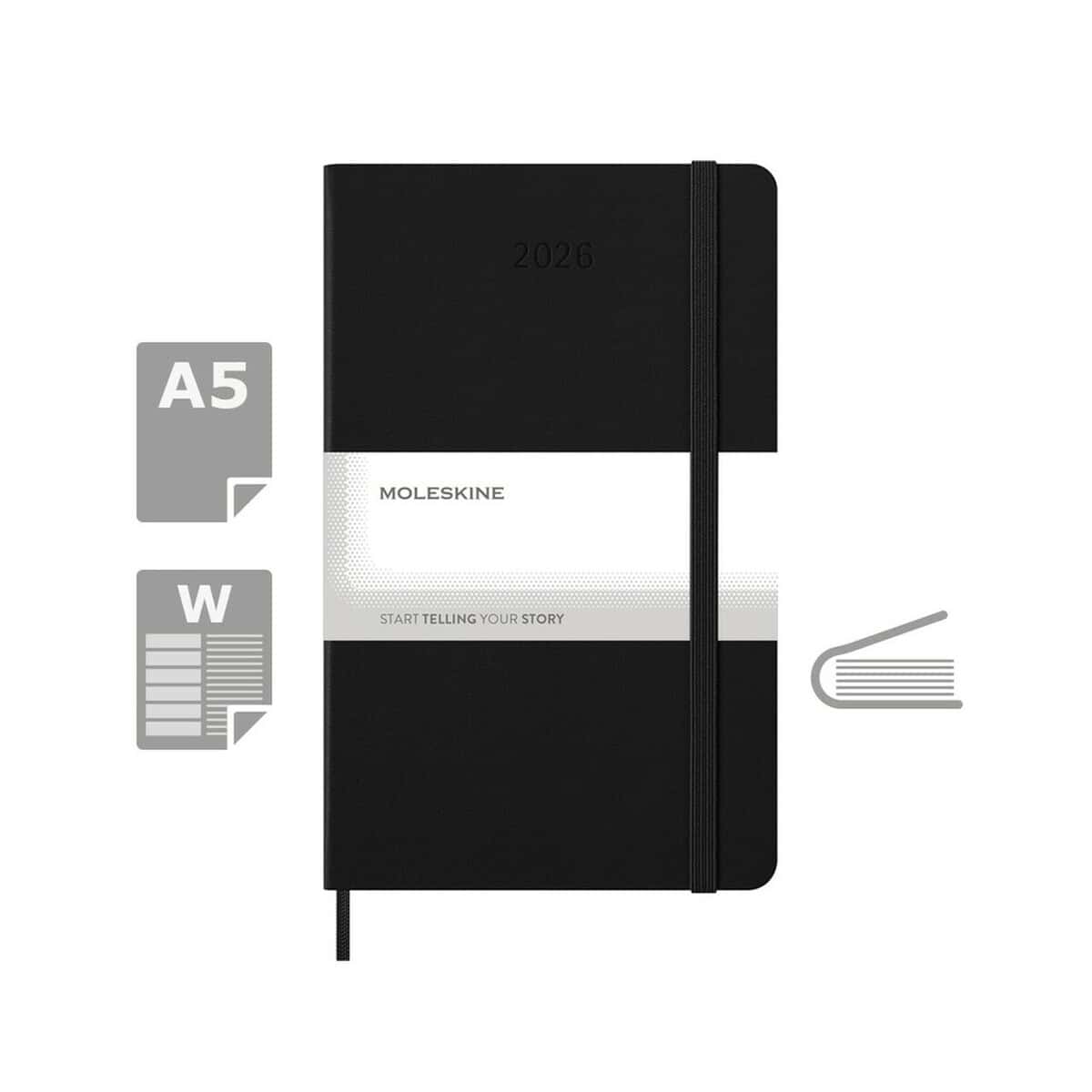 Kalendarz MOLESKINE w formacie ok. A5 (13 x 21 cm) to prawdziwie prestiżowy gadżet 😊, który łączy tygodniowy kalendarz z notatnikiem na aż 144 stronach. Elegancka, twarda okładka w kolorach khaki, błękitnym, czarnym, czerwonym lub ciemnoniebieskim chroni zawartość oraz podkreśla styl właściciela, a elastyczna opaska i materiałowa zakładka dbają o wygodę użytkowania. Lekka waga 278 g sprawia, że produkt zmieści się w torbie, aktówce czy plecaku, stając się doskonałym towarzyszem spotkań, konferencji i codziennej pracy.