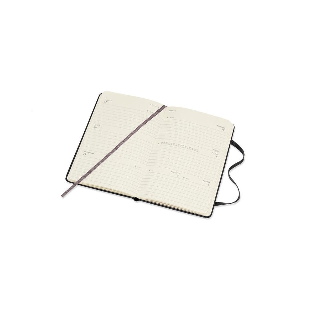 Kieszonkowy Kalendarz MOLESKINE to idealny produkt dla osób szukających poręcznego i trwałego narzędzia planowania. Wykonany z twardej okładki, kalendarz ma horyzontalny układ tygodniowy i 144 strony. Dodatkowo został wyposażony w zakładkę i elastyczną opaskę do zamykania, co pozwala na łatwe przechowywanie i zabranie go wszędzie ze sobą. Kalendarz MOLESKINE to skuteczny i łatwy w użyciu sposób na utrzymanie porządku i odniesienie sukcesów.