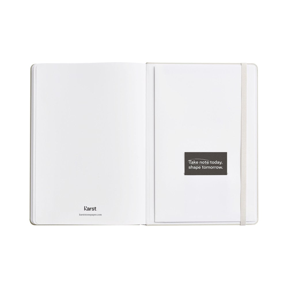 Twarda oprawa Karst® Notatnik A5 to bestseller i doskonały prezent dla wszystkich. Jego gładka faktura stron i płaskie wiązanie zapewniają komfort i miejsce na notatki i pomysły. Wyposażony jest w elastyczną taśmę do trzymania notebooka zamkniętego, 144 wodoodporne, odporne na rozdarcia strony w linie, rozszerzalną tylną kieszeń do przechowywania oraz wstążkę z uszczelnioną końcówką i zaokrąglonymi narożnikami, aby chronić Twoje notatki. Ten notatnik będzie Ci służyć z powodzeniem przez wiele lat.