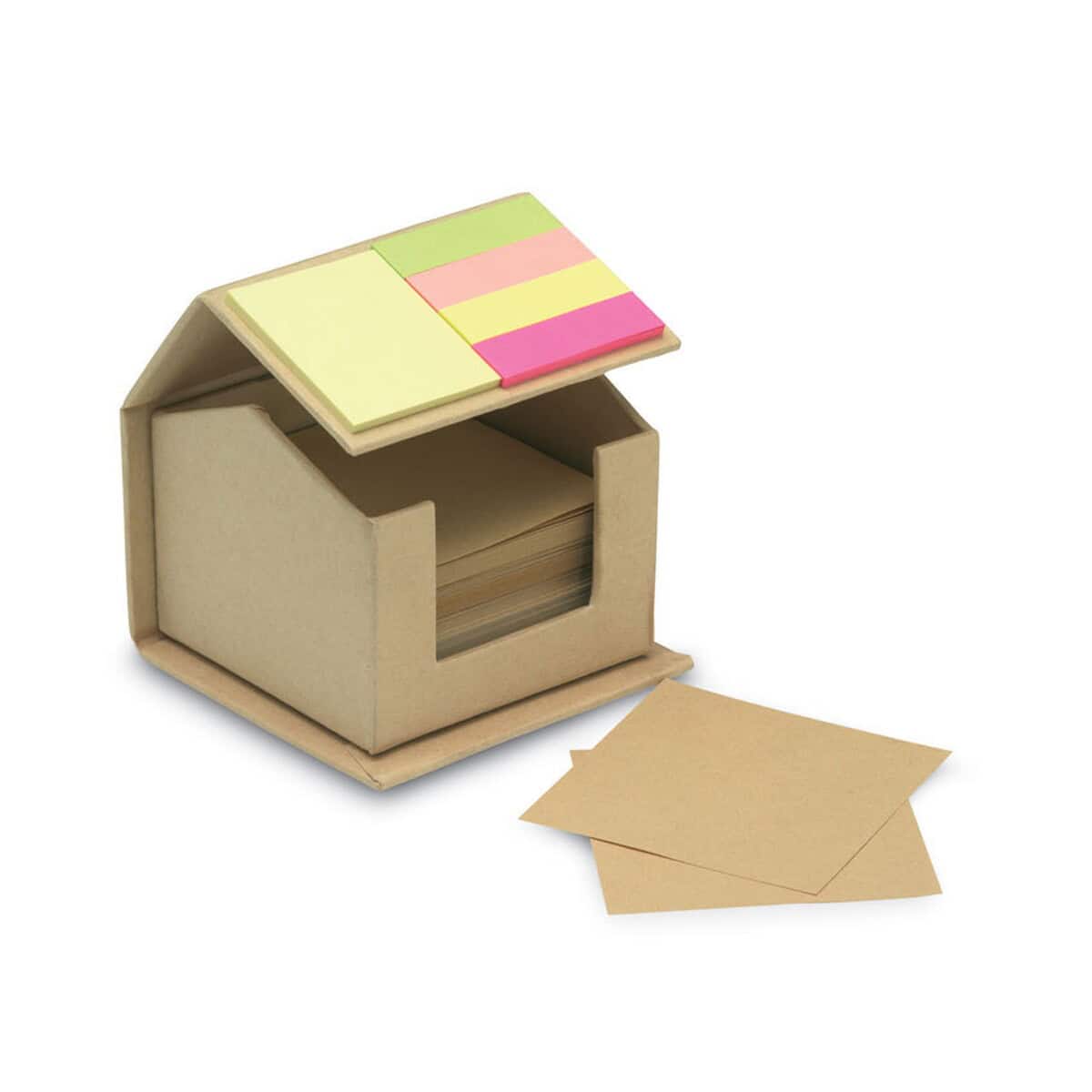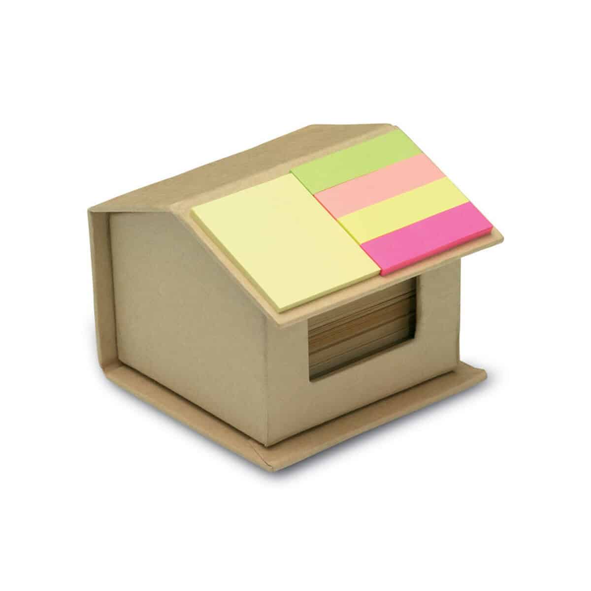 Ten doskonały, praktyczny gadżet spełni oczekiwania pracowników biurowych, studentów, handlowców i wszystkich osób, które codziennie sporządzają szybkie notatki. Karteczki samoprzylepne pozwalają oznaczać strony w dokumentach, zostawiać przypomnienia na monitorze, a kolorowe znaczniki ułatwiają segregację informacji. Pudełko w kształcie domu doda przyjaznej atmosfery na każdym stanowisku pracy, a możliwość umieszczenia indywidualnego logo sprawi, że zestaw stanie się trwałą wizytówką marki.