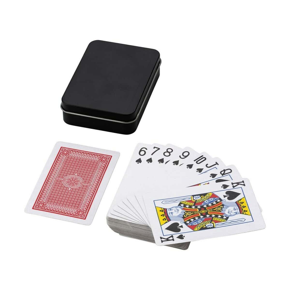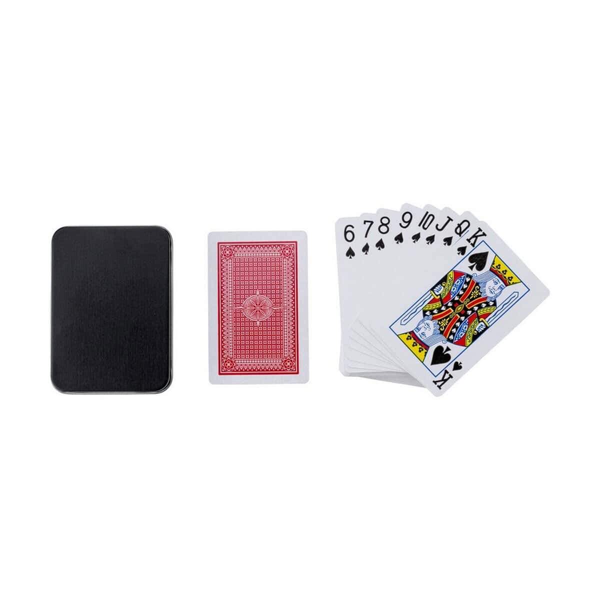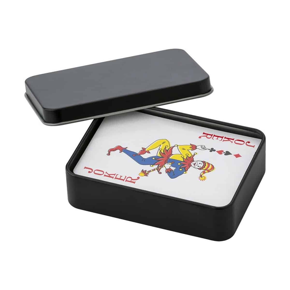 Karty do gry w eleganckiej metalowej puszce to znakomity sposób, aby wyróżnić markę w niebanalny, a zarazem praktyczny sposób. Ta kompaktowa talia, zamknięta w stylowym etui o wymiarach 9,5 x 6,5 x 3 cm, zachwyca estetyką i trwałością – połączenie papieru najwyższej jakości z solidnym metalem gwarantuje długie i bezproblemowe użytkowanie. Dzięki klasycznym, ponadczasowym barwom czarnym oraz srebrnym całość prezentuje się ekskluzywnie i przyciąga spojrzenia. 😊
