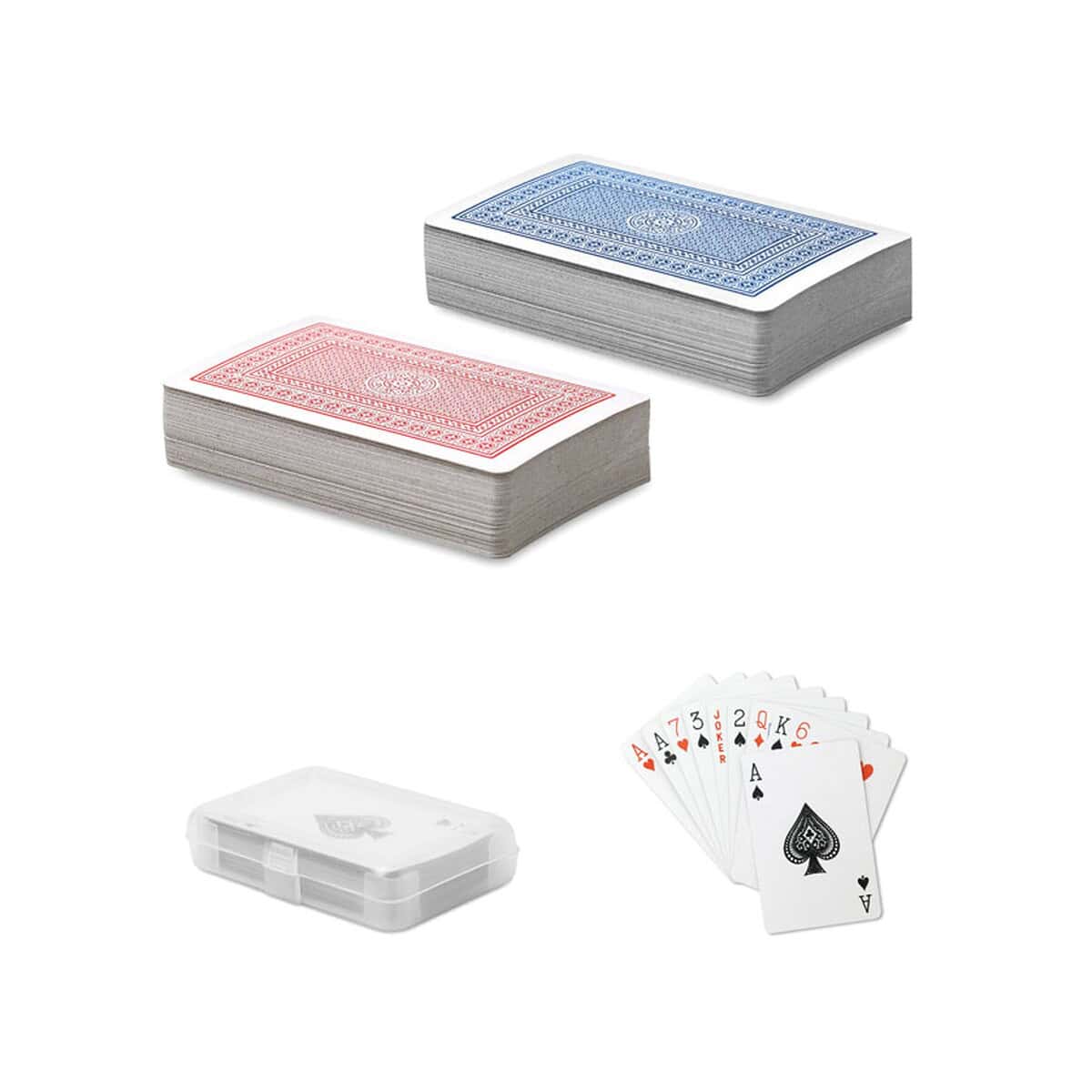 🙂 Karty do gry w pudełku ARUBA to znakomity sposób, aby wnieść odrobinę rozrywki do codziennych spotkań biznesowych i prywatnych. Ten poręczny gadżet zachwyci każdego, kto ceni sobie praktyczne drobiazgi z charakterem. Komplet składa się z 54 kart wykonanych z wytrzymałego papieru i chronionych przez solidne, transparentne plasticowe etui, które mierzy jedynie 6,5 × 2 × 9,5 cm i waży zaledwie 0,076 kg. Do wyboru masz energetyczny czerwony lub elegancki niebieski tył kart – oba kolory świetnie podkreślą Twoje firmowe logo.