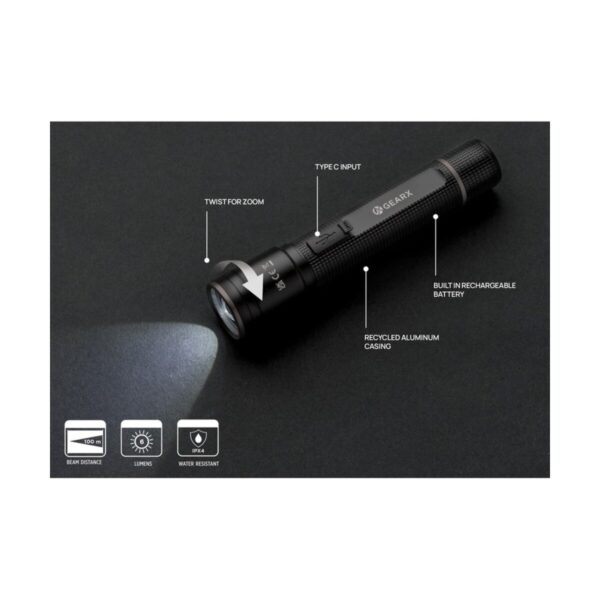Kieszonkowa latarka Gear X, ładowana przez USB, aluminium z recyklingu