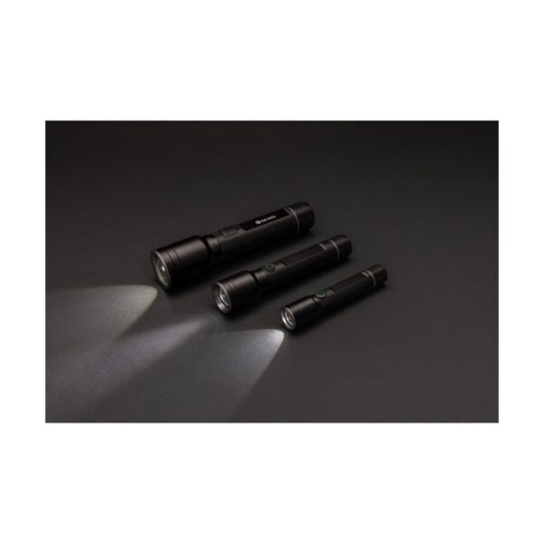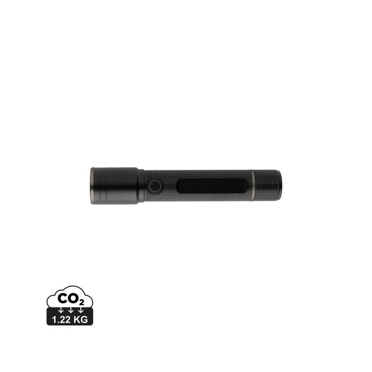 Kieszonkowa latarka Gear X, ładowana przez USB, aluminium z recyklingu to niezbędnik dla każdego, kto potrzebuje niezawodnego źródła światła w każdych warunkach. Produkt ten jest doskonałym połączeniem nowoczesnej technologii i dbałości o środowisko, dzięki wykonaniu z aluminium z recyklingu oraz certyfikatowi RCS, potwierdzającemu wysoki procent użytych materiałów recyclowanych.