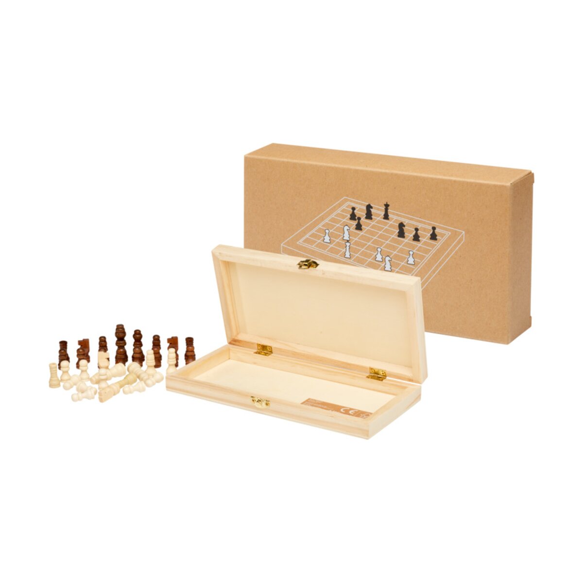 Ciesz się intelektualną stymulacją, jaką zapewnia gra w szachy w dowolnym miejscu dzięki zestawowi szachowemu King. Zapewniając idealne połączenie przenośności i elegancji, ten zestaw zawiera 32 figury szachowe w kolorze brązowym i kości słoniowej, które są pięknie wykonane z odpowiedzialnie pozyskiwanego drewna sosnowego. Składana drewniana szachownica umożliwia wygodne przechowywanie i transport. Solidne metalowe zawiasy i zamek zapewniają, że zestaw szachowy jest cały czas bezpieczny i chroniony. Dostarczany z pudełkiem upominkowym z papieru kraft i instrukcją obsługi.