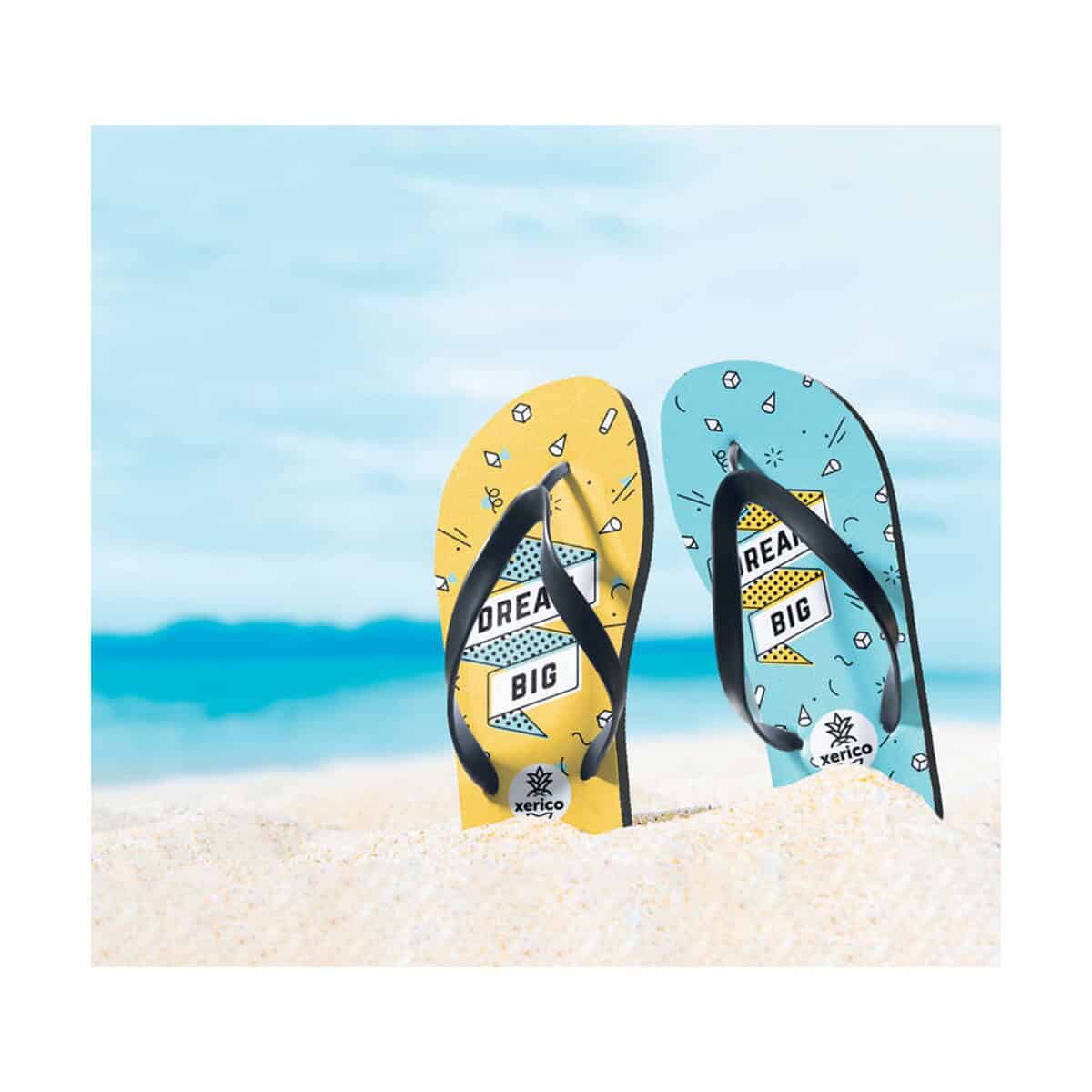 Przewiewność, łatwe czyszczenie oraz możliwość błyskawicznego nanoszenia pełnokolorowej grafiki to wyróżniające cechy produktu. Jedno spojrzenie na wyraźny, kolorowy motyw wystarczy, aby klient skojarzył Twój brand z relaksem i wysoką jakością. Co więcej, takie klapki mają również potencjał sprzedażowy: mogą trafić do oferty sklepu hotelowego lub butiku surf shopu jako stylowe akcesoria plażowe z logo znanej marki. Postaw na to rozwiązanie, a Twoje działania reklamowe nabiorą wakacyjnego charakteru pełnego świeżości i pozytywnej energii.