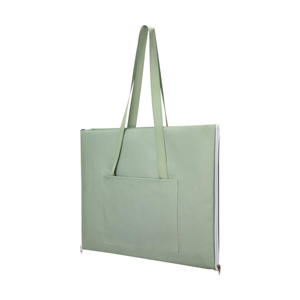 Po złożeniu Koc piknikowy Laytote zamienia się w poręczną torbę zapinaną na suwak. Dwie pojemne kieszenie na drobiazgi i wygodne uchwyty pozwalają zabrać ze sobą klucze, krem z filtrem czy ulubioną książkę. Wymiary 100 x 145 cm oferują komfort dla dwóch osób, a waga 615 g sprawia, że produkt nie obciąży plecaka ani koszyka piknikowego. Dostępny w czterech modnych wersjach kolorystycznych – zielonej, czarnej, białej i niebieskiej – daje szerokie możliwości dopasowania barwy do identyfikacji wizualnej marki.