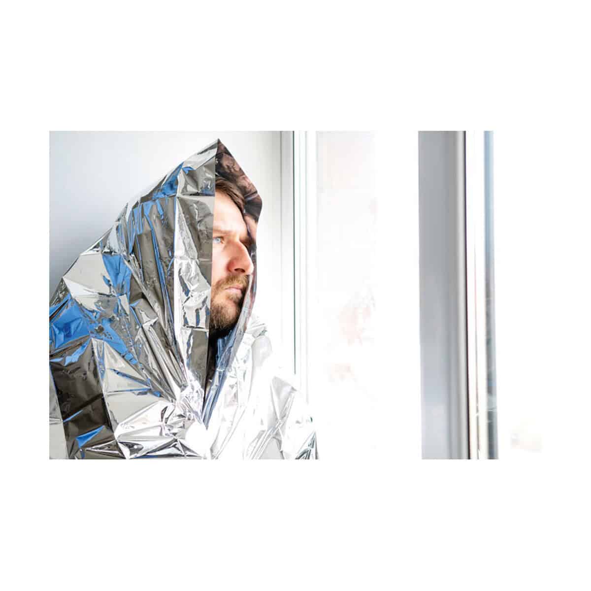 Koc ratunkowy w saszetce HELP to niepozorny, a zarazem niezrównany sprzymierzeniec w sytuacjach awaryjnych. Zapakowany w poręczne, czarne etui z poliestru RPET o wymiarach 6,5 x 11 cm i wadze zaledwie 55 g, zmieści się w każdym plecaku, schowku samochodowym czy kieszeni kurtki. Rozłożony osiąga pełne 130 x 210 cm, tworząc grubą warstwę aluminium, która skutecznie odbija aż do 90 % ciepła ciała. To sprawia, że Koc ratunkowy w saszetce HELP doskonale zabezpiecza przed wychłodzeniem lub przegrzaniem, a jednocześnie chroni przed wilgocią i wiatrem 😊.
