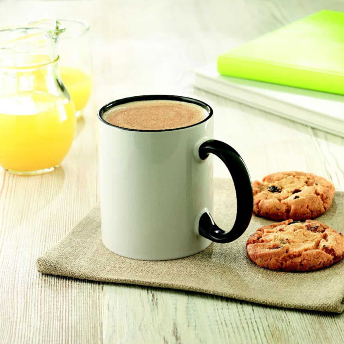 Niezawodna warstwa pod sublimację pozwala uzyskać pełnokolorowy nadruk, dzięki czemu kubek staje się wyrazistym nośnikiem przekazu reklamowego. Do wyboru masz modne barwy – niebieski, zielony, szary, czerwony, czarny, ciemnogranatowy – każdą z charakterystycznym kolorowym uchwytem i wnętrzem, które kontrastują z białą powierzchnią zewnętrzną. Taka kombinacja przyciąga wzrok i podkreśla charakter marki.