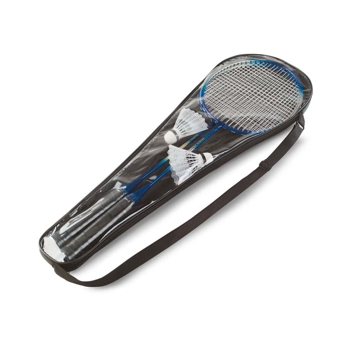 Komplet do badmintona MADELS to świetny, pełen energii gadżet, który wnosi sportową dynamikę do każdej akcji promocyjnej. Dzięki dwóm lotkom i solidnym rakietkom wykonanym z trwałego metalu staje się doskonałym towarzyszem zarówno spontanicznych rozgrywek na plaży, jak i zaplanowanych turniejów na piknikach firmowych. Całość mieści się w praktycznym, przezroczystym etui z paskiem na ramię, co sprawia, że zestaw jest wygodny w transporcie i zawsze gotowy do gry 😊.