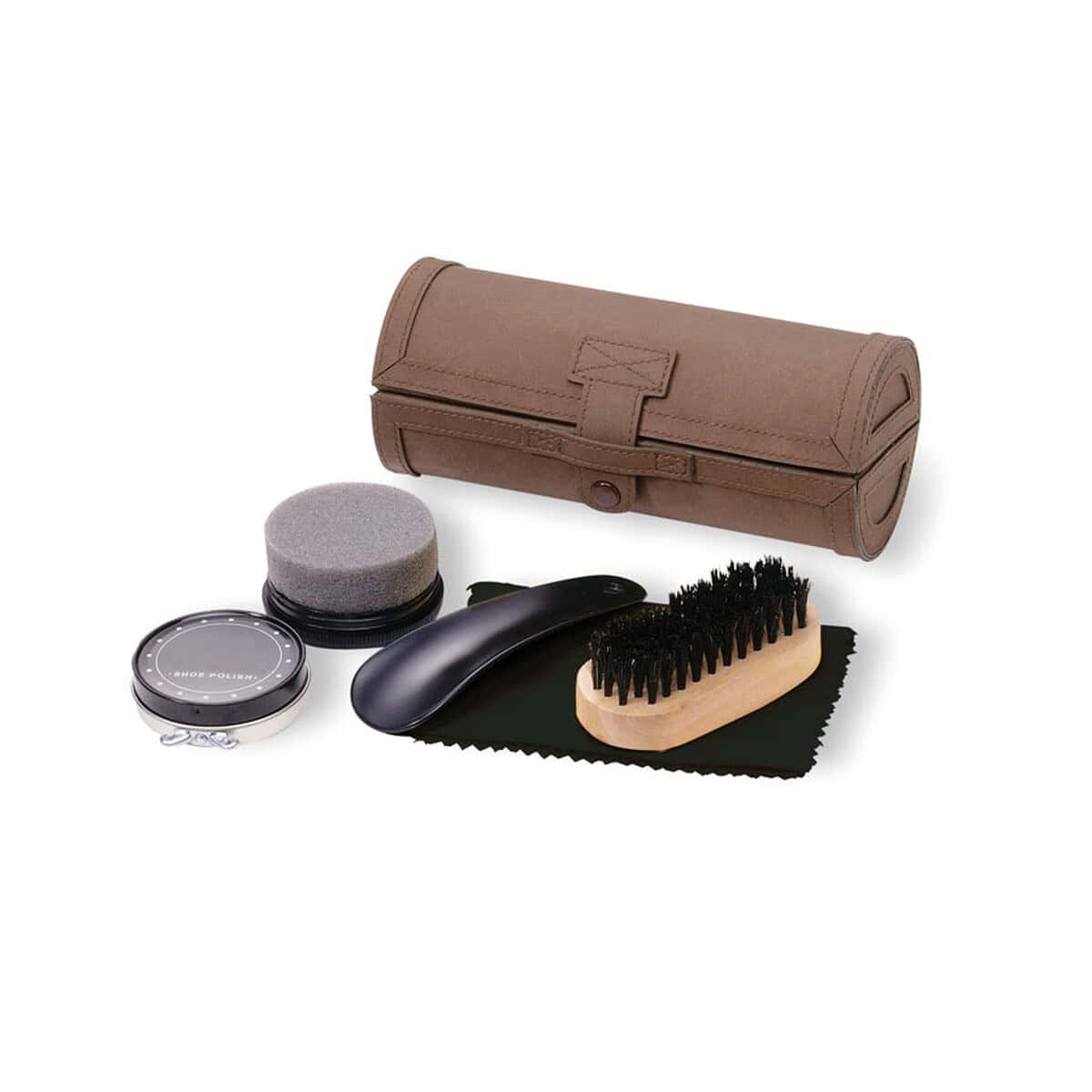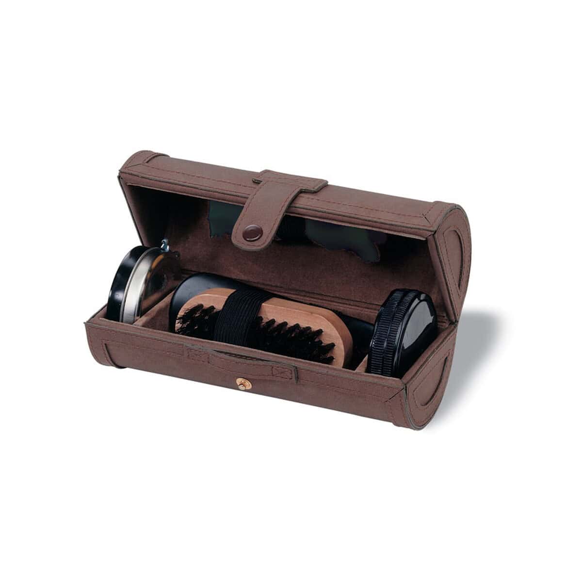 Komplet do butów, 5 cz GENTLEMAN to synonim wysmakowanej elegancji, która zamknięta została w poręcznym, brązowym etui o wymiarach ø7×16 cm. W zestawie znajdziesz wszystko, czego potrzebuje stylowy mężczyzna: czarną ściereczkę, poręczną łyżkę, solidną drewnianą szczotkę, gąbkę do nabłyszczania oraz neutralną pastę. Całość waży jedynie 0,278 kg, a trwały materiał pvc sprawia, że akcesoria wytrzymają lata intensywnego użytkowania. 😊