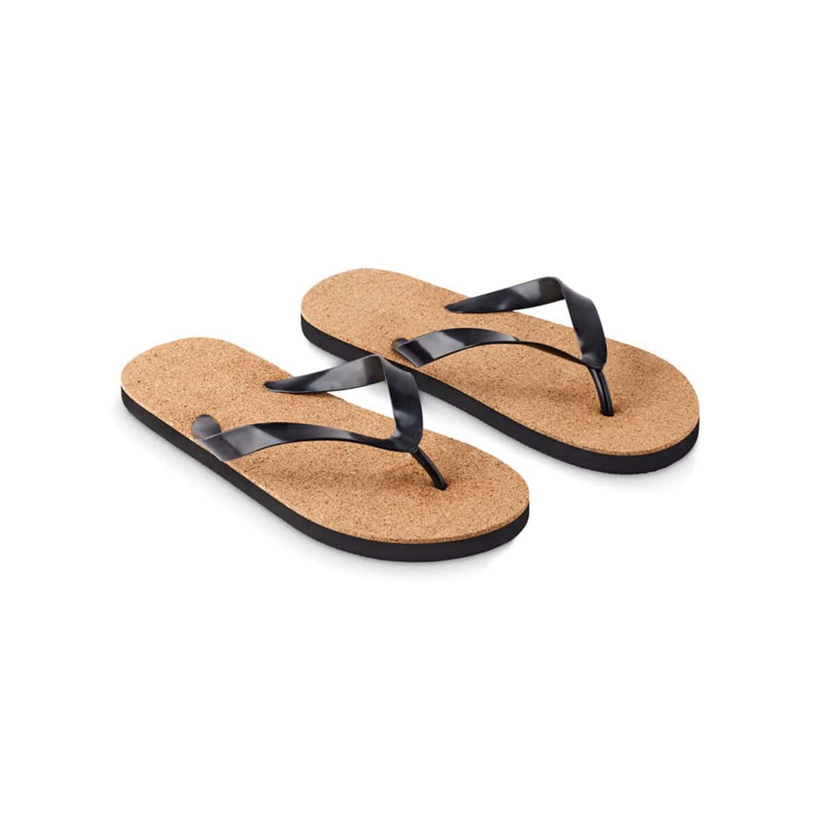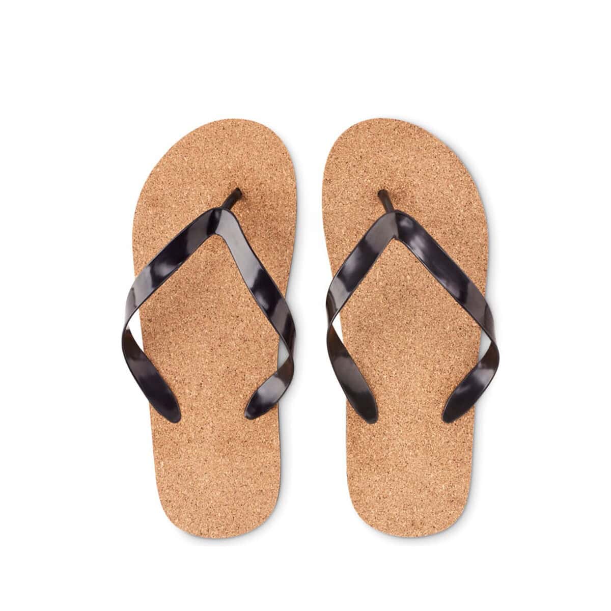 Cechy produktu: materiał: naturalny korek + EVA, kolor: czarny, waga: 0,170 kg, rozmiar M: 36-39. Wybierając te klapki, inwestujesz w wysokiej klasy gadżet reklamowy, który będzie pracował na rozpoznawalność Twojej marki przez wiele sezonów dla Twojej firmy.