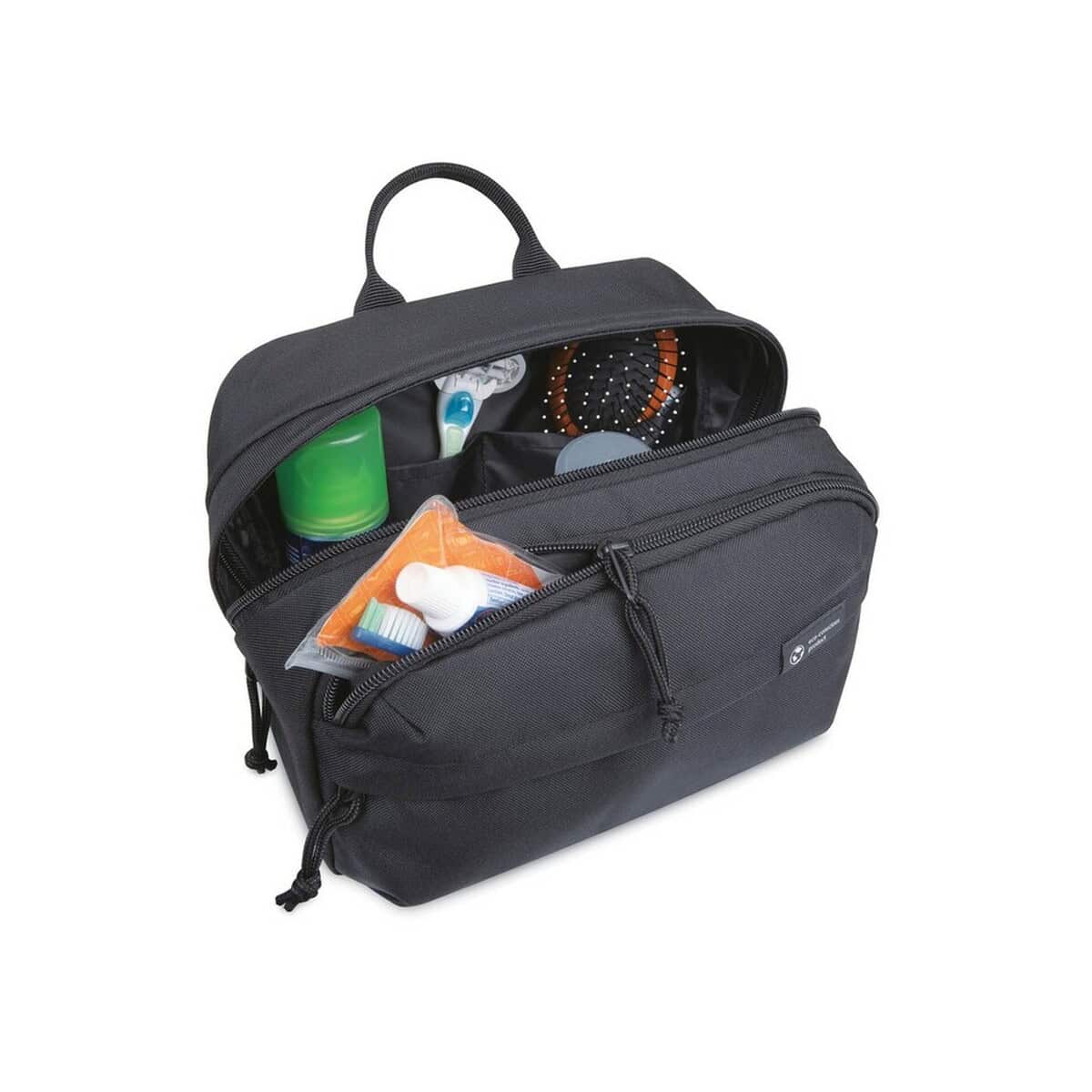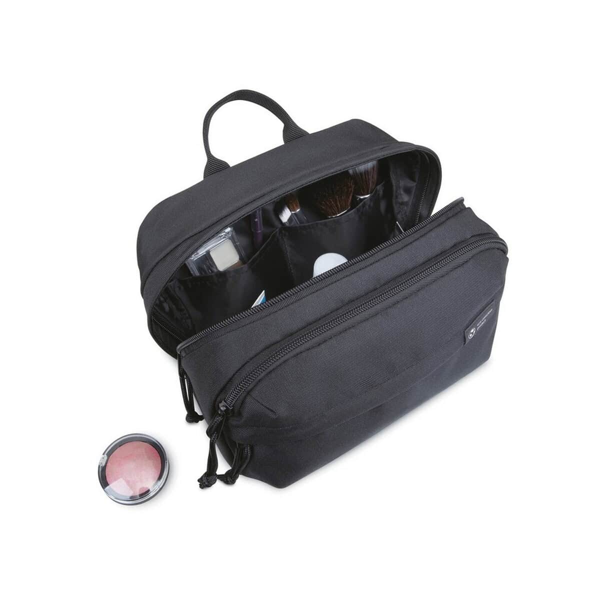 Kosmetyczka Renew AWARE™ RPET będzie doskonała dla aktywnych podróżników, profesjonalistów dbających o elegancję w delegacji, jak i miłośników porządku w domowej łazience 😉. Pomieści kosmetyki, akcesoria do golenia, elektronikę, a nawet drobne elementy garderoby. W plecaku, walizce czy samochodzie – utrzyma wszystko w jednym miejscu, chroniąc zawartość przed wilgocią i zabrudzeniami.