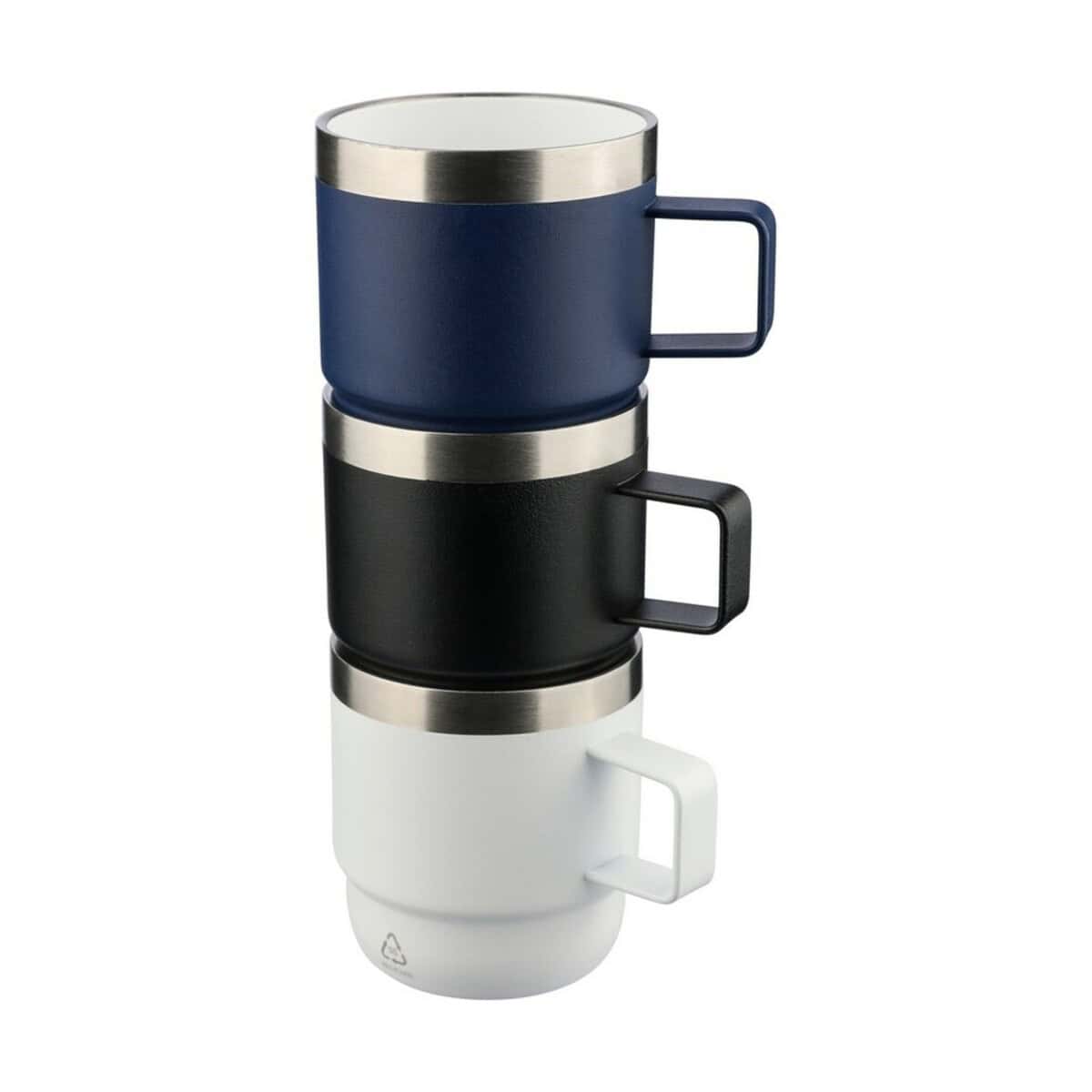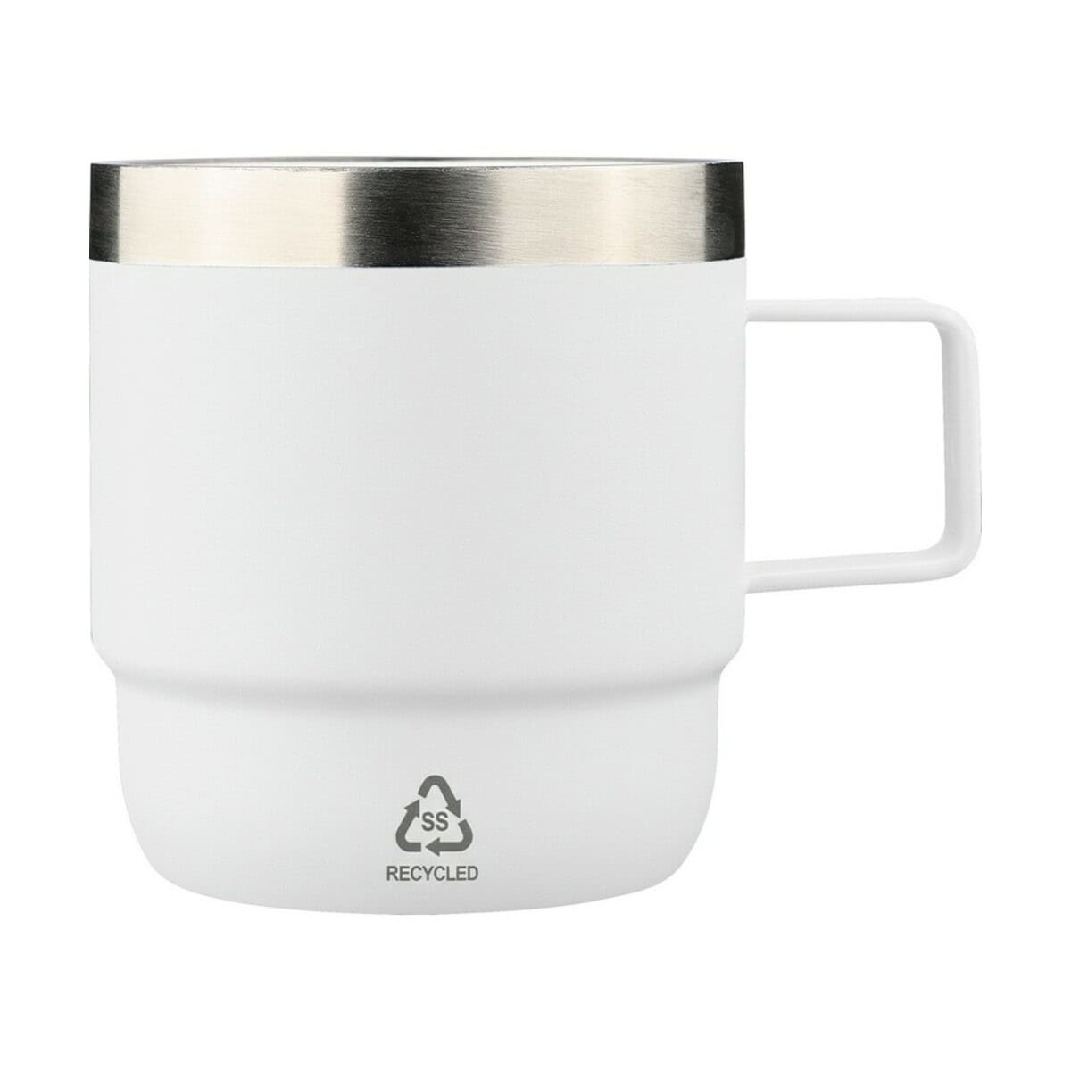 Kubek 180 ml to znakomity, kompaktowy towarzysz codziennej kawy, herbaty czy ziół, który łączy w sobie troskę o środowisko z nowoczesnym designem. Wykonany z recyklingowej stali nierdzewnej (wewnątrz 304 / na zewnątrz 201) z ceramiczną powłoką wewnątrz, gwarantuje neutralny smak napoju oraz wyjątkową trwałość. Ikona recyklingu na ściance subtelnie podkreśla ekologiczny charakter produktu, co czyni go fantastycznym wyborem dla marek akcentujących odpowiedzialność za planetę. Niewielkie wymiary 10 × 7 × 7,5 cm i waga zaledwie 120 g sprawiają, że kubek mieści się w większości ekspresów i toreb, a ergonomiczny uchwyt ułatwia pewny chwyt nawet w podróży 🚗.