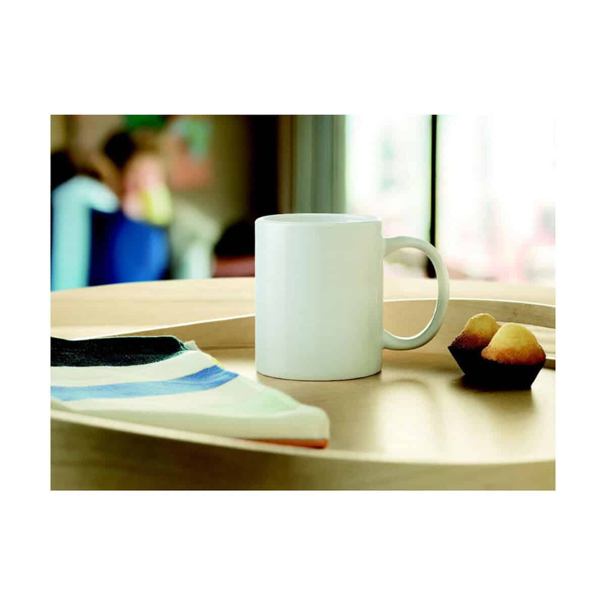 Kubek ceramiczny do sublimacji SUBLIM to znakomity sposób, aby każdego ranka przypominać klientom o marce przy aromatycznej kawie ☕. Jego pojemność 300 ml zapewnia komfortowe użytkowanie zarówno w biurze, jak i w domu. Wykonany z wytrzymałego materiału stoneware, w kolorze ponadczasowej bieli, prezentuje się elegancko i nowocześnie. Dzięki specjalnej powłoce umożliwiającej nadruk techniką sublimacji, kubek otwiera niemal nieograniczone możliwości personalizacji – od prostych napisów po pełnokolorowe grafiki i logo. Wymiary ø8 × 9,5 cm oraz waga 0,343 kg sprawiają, że naczynie doskonale leży w dłoni, a jednocześnie jest solidne i odporne na codzienne użytkowanie.