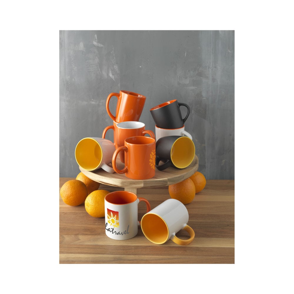 Kubek Riviera to wspaniały i pełen charakteru produkt, który tworzy piękną dekorację w każdym domu lub biurze. Wykończenie zewnętrzne i wewnętrzne akcenty kolorystyczne sprawiają, że kubek jest wyjątkowo elegancki. Wytrzymała ceramika, z której wykonany jest ten produkt, mieści do 340ml gorących napojów. Nadruk na kubku Riviera jest odporny na zmywanie, a sam produkt można myć w zmywarce zgodnie z normą EN12875-1 przez co najmniej 125 cykli mycia.