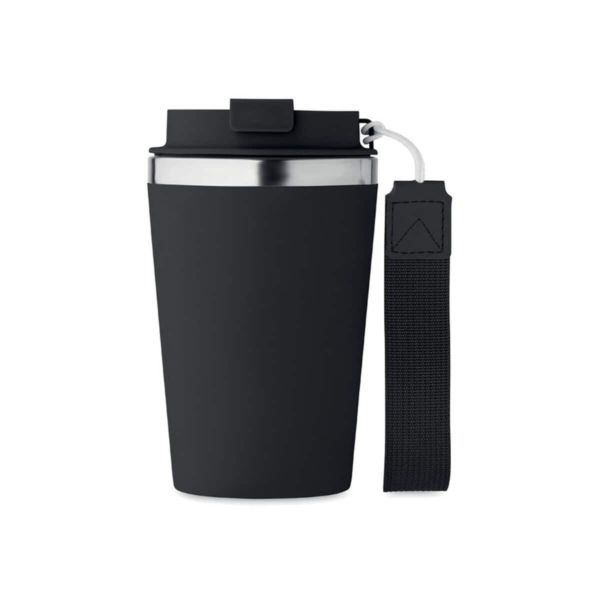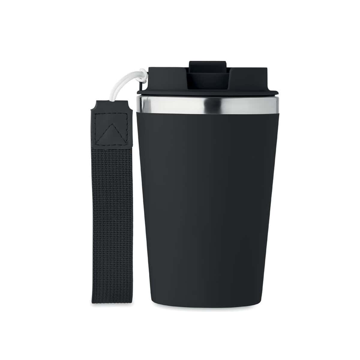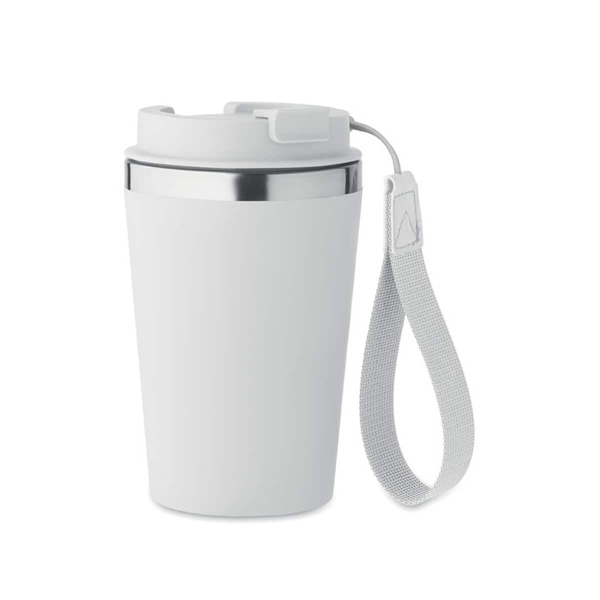 Kubek dwuścienny 350 ml TOPAZ to prawdziwy hit wśród ekologicznych akcesoriów do napojów 😊. Dzięki wykonaniu z 90 % recyklingowanej stali nierdzewnej i dodatkowej, zewnętrznej warstwy z PP, staje się wyjątkowym wyborem dla Twojej firmy, która ceni zrównoważony rozwój oraz dba o wizerunek. Podwójne ścianki gwarantują świetną izolację termiczną, dlatego kawa czy herbata utrzymają optymalną temperaturę przez dłuższy czas, a dłonie pozostaną bezpieczne przed gorącem. Przyjemny w dotyku pasek na nadgarstek z RPET sprawia, że można go łatwo zabrać na spacer, do pracy, czy w plener. Dostępność aż ośmiu modnych kolorów – od klasycznej bieli po głęboki ciemnogranat – pozwala idealnie dopasować kubek do identyfikacji wizualnej marki.