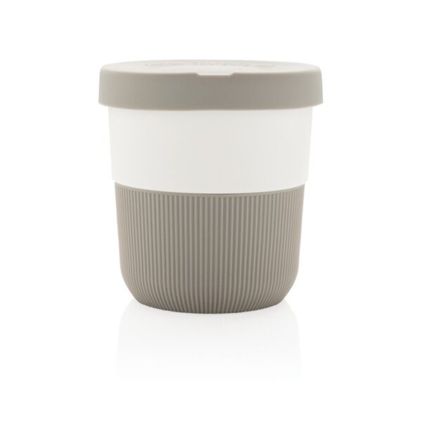 Kubek podróżny 250 ml Coffee to go z PLA to doskonały wybór dla osób ceniących sobie ekologiczny styl życia i mobilność. Kubek wykonany jest z PLA (polilaktyd), co oznacza, że jest przyjazny dla środowiska, gdyż PLA to materiał biodegradowalny, pochodzący z surowców odnawialnych. Dodatkowo, kubek jest wyposażony w wygodne, silikonowe wieczko i uchwyt, które zapewniają komfort podczas picia oraz bezpieczeństwo, chroniąc przed rozlewaniem się napoju.