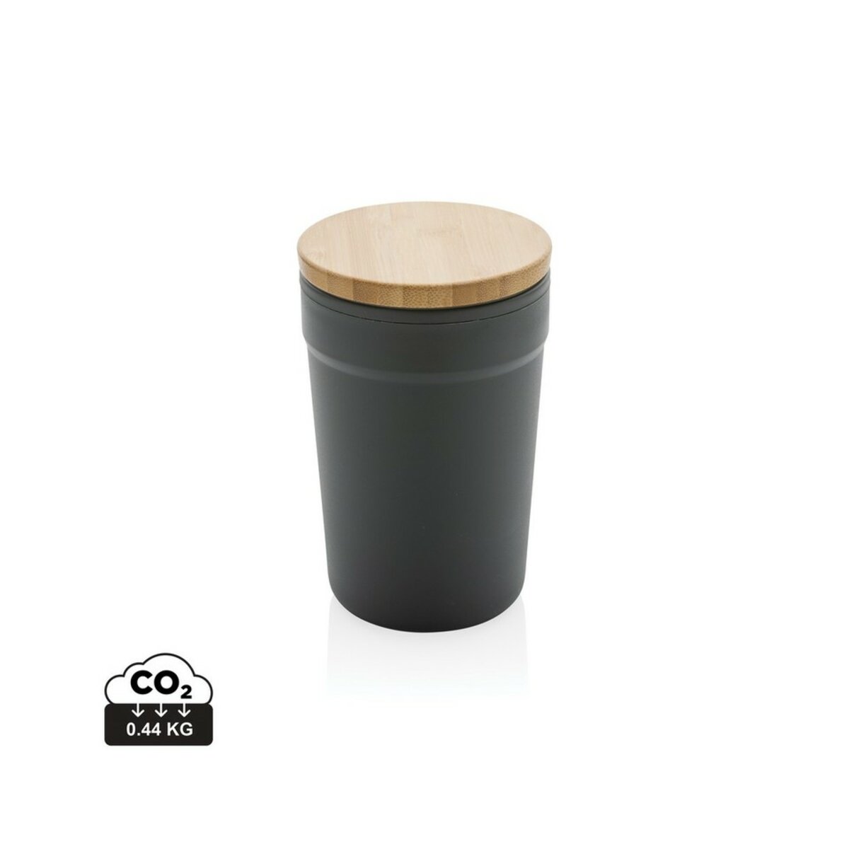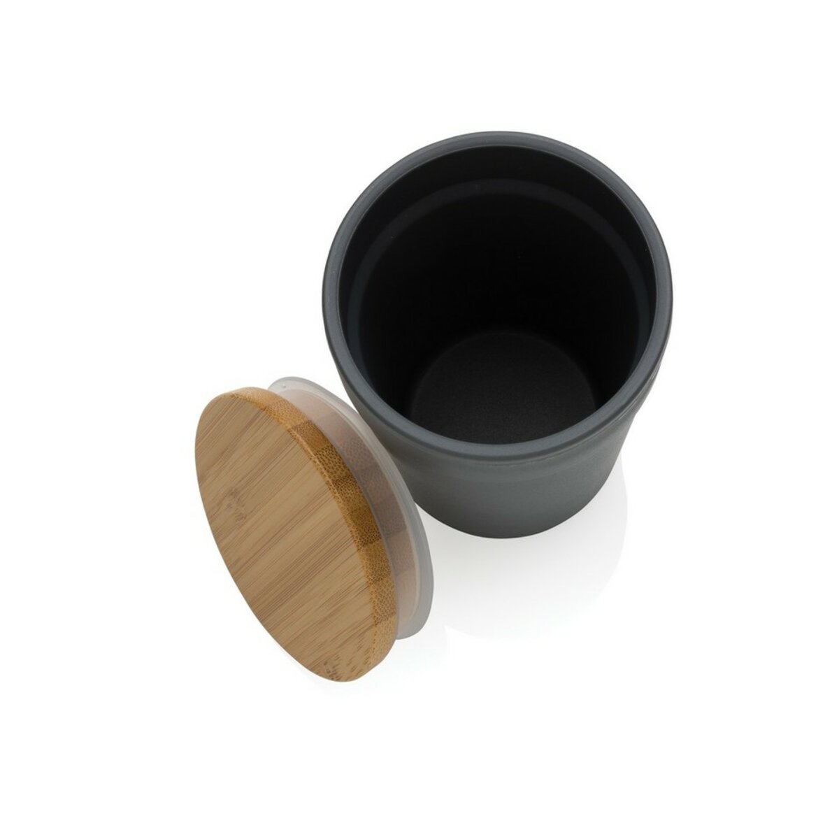 Ten kubek podróżny zapewnia idealny sposób na zabranie ulubionego napoju wszędzie tam, gdziekolwiek się udajesz! Wykonany z PP z recyklingu z certyfikatem GRS, zawiera aż 52% materiałów pochodzących z recyklingu, a dzięki wytrzymałemu bambusowemu wieczku jest w pełni szczelny. Oprócz tego, jego pojemność wynosi aż 300 ml, dzięki czemu możesz mieć go przy sobie cały dzień i cieszyć się swoim ulubionym napojem. Dodatkowo, kubek jest dostarczany w ozdobnym pudełku wykonanym z papieru kraftowego z certyfikatem FSC®, co sprawia, że jest to idealny prezent dla każdego.