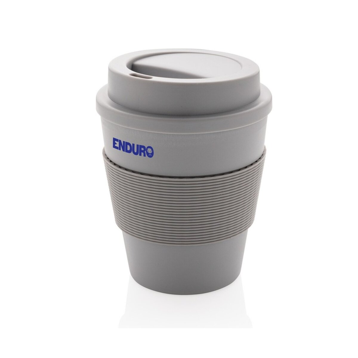 Kubek podróżny 350 ml to doskonały towarzysz dla każdej osoby, która ceni sobie wygodę połączoną z troską o środowisko. Ten wyjątkowy kubek został wykonany z materiału PP, który jest w 100% nadający się do recyklingu, co czyni go wyborem przyjaznym dla planety. Dodatkowym atutem jest silikonowy uchwyt, zapewniający komfort trzymania oraz bezpieczeństwo, dzięki zapewnieniu stabilnego chwytu.