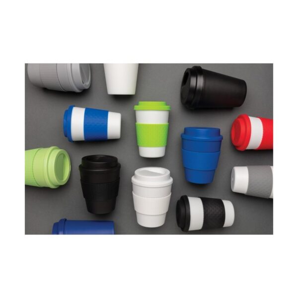 Kubek podróżny 350 ml to doskonały wybór dla wszystkich tych, którzy cenią sobie praktyczność i ekologiczny styl życia. Wykonany w 100% z recyklingowalnego materiału PP i wyposażony w silikonowy uchwyt, ten kubek gwarantuje wysoki komfort użytkowania podczas wielu podróży. Średnica wynosząca 9 cm oraz wysokość 11,8 cm sprawiają, że jest to idealny rozmiar, aby z łatwością zmieścił się w większości uchwytów samochodowych, a jego pojemność 350 ml pozwala na zabranie odpowiedniej ilości napoju.