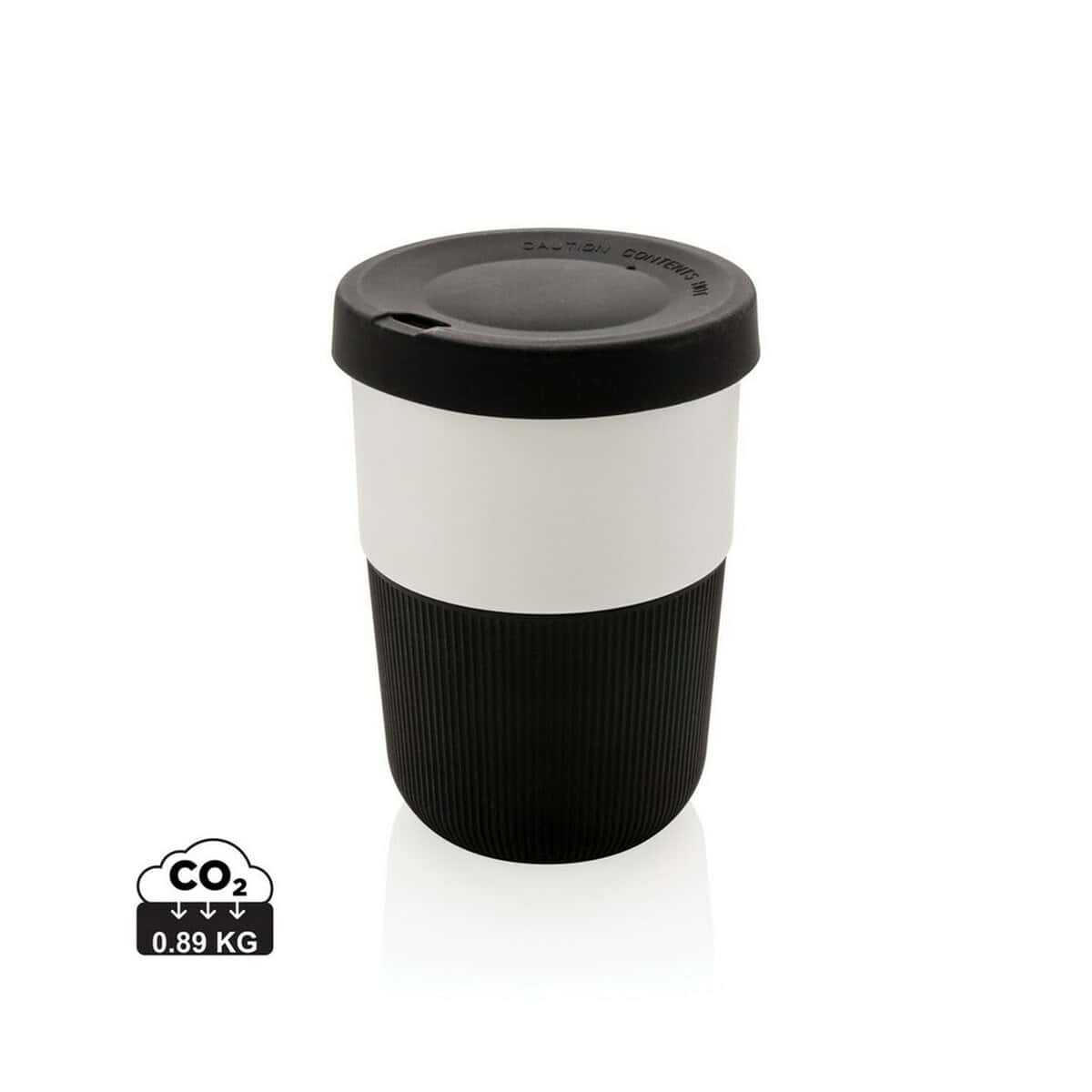 Kubek podróżny 380 ml Coffee to go z PLA zachwyca nowoczesnym designem i proekologicznym charakterem, sprawiając, że staje się znakomitym wyborem na gadżet reklamowy 😊. Wykonany z przyjaznego środowisku PLA, wyposażony w silikonowe wieczko i uchwyt, nie zawiera melaminy, a jego ślad węglowy to zaledwie 0,89 kg CO2. Pojemność 380 ml pozwoli cieszyć się ulubioną kawą lub herbatą w drodze do biura, podczas konferencji czy w czasie wakacyjnych wojaży. Dzięki kompaktowym wymiarom 11,5 × Ø 8,6 cm kubek zmieści się w większości uchwytów samochodowych, a dostępność klasycznych kolorów – czarnego i szarego – ułatwia dopasowanie do identyfikacji wizualnej każdej marki.