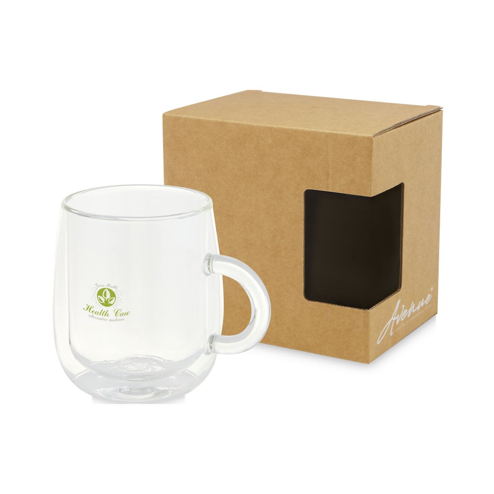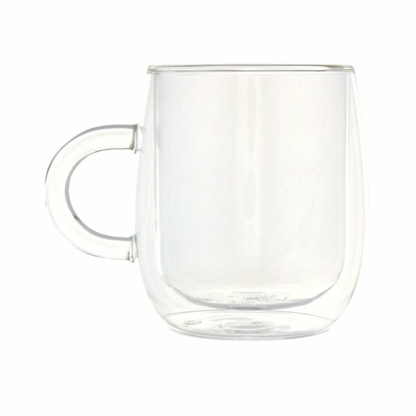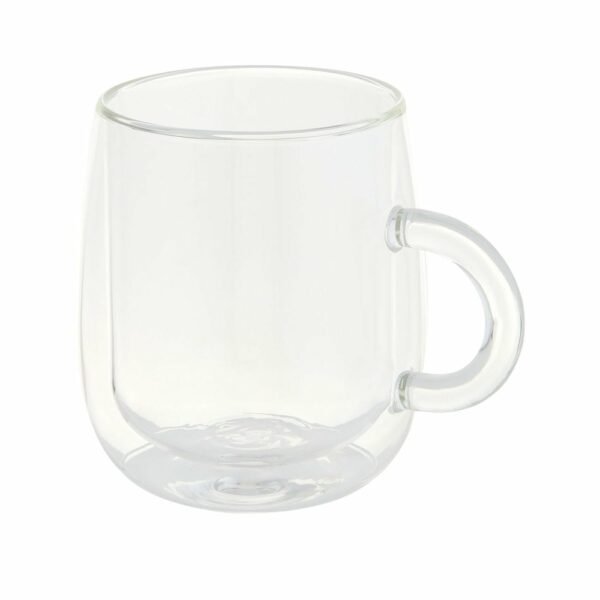 Kubek dwuścienny ze szkła borokrzemowego o pojemności 330 ml to idealny dodatek do serwowania ulubionych napojów głównie latte macchiato, gorącej czekolady lub dowolnego gorącego napoju. Wykonany jest z trwałego szkła borokrzemianowego, które zachowuje świeżość napoju i nie zawiera żadnych szkodliwych substancji chemicznych. Przetestowany i zatwierdzony zgodnie z niemieckimi przepisami dotyczącymi bezpieczeństwa żywności (LFGB), oraz poddany testom na zawartość ftalanów zgodnie z przepisami REACH. Można myć w zmywarce, a kubek jest zapakowany w kartonowe pudełko upominkowe wykonane z materiałów pochodzących z recyklingu.