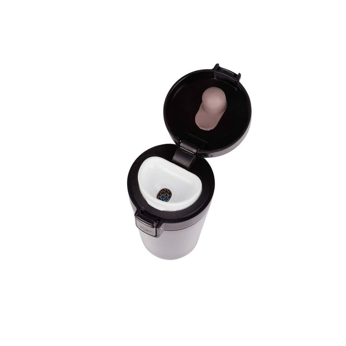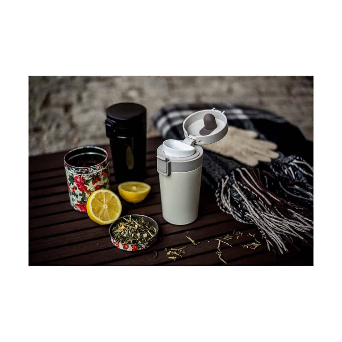 Kubek termiczny 300 ml, posiada sitko zatrzymujące fusy | Laura to znakomity kompan codziennych i wyjazdowych rytuałów parzenia kawy lub herbaty. Jego pojemność 300 ml zamknięta w kompaktowych wymiarach Ø7,5 x 15 cm oraz niska waga 235 g sprawiają, że z łatwością mieści się w torbie, plecaku czy uchwycie samochodowym 🚗. Konstrukcja z podwójnych ścianek ze stali nierdzewnej z próżnią pomiędzy nimi zapewnia efekt termosu – napój pozostaje gorący lub przyjemnie chłodny przez długie godziny. Praktyczne wieczko z blokadą i przyciskiem umożliwia obsługę jedną ręką, a system leakproof chroni dokumenty i elektronikę przed zalaniem.