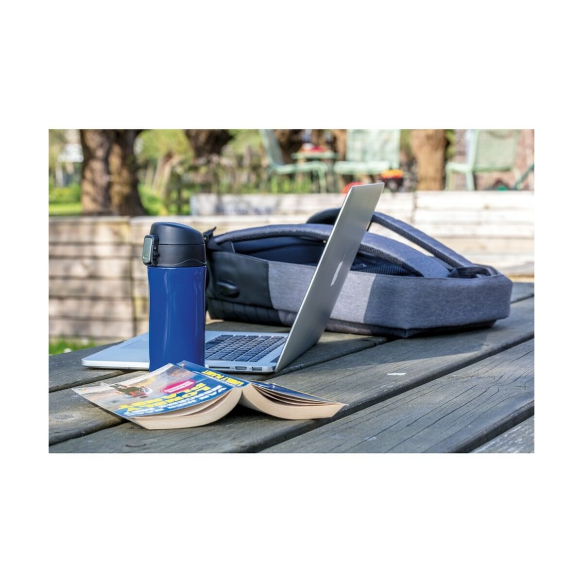 Kubek termiczny 300 ml to wyjątkowy produkt wykonany z materiałów pochodzących z recyklingu, z certyfikatem RCS i FSC®. Jego zawartość materiałów z recyklingu obliczona na podstawie wagi całkowitej przedmiotu wynosi 71%. Posiada podwójne ścianki ze stali nierdzewnej z próżnią pomiędzy, dzięki czemu jest wygodny w użyciu i można go obsługiwać jedną ręką. Co więcej, utrzymuje temperaturę napojów ciepłych do 5 godzin oraz zimnych do 15 godzin.
