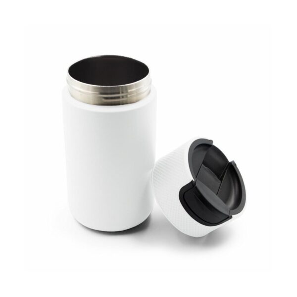 Plastikowe wieczko z praktycznym zamknięciem, które obsługuje się jedną ręką, dodatkowo podnosi komfort użytkowania, a klasa termiczna C +leakproof gwarantuje, że zawartość kubka nie wycieknie, nawet podczas ruchu. Funkcjonalność tego produktu sprawia, że jest on doskonały dla osób aktywnych, które dużo czasu spędzają w drodze, oraz jako element wyposażenia każdego biura czy samochodu.