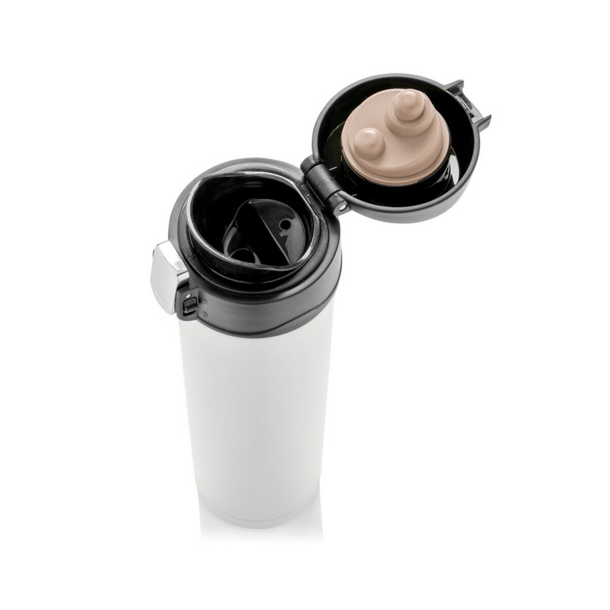 Kubek termiczny 450 ml to doskonały sposób na utrzymanie ciepła napoi nawet przez pięć godzin lub chłodu nawet przez 15 godzin. Wykonany jest z materiałów pochodzących z recyklingu, co potwierdza certyfikat RCS, a całkowita zawartość materiałów z recyklingu wynosi 76%. Podwójne ścianki z próżnią pomiędzy zapewniają doskonałą izolację termiczną. Dodatkowo, pasuje do większości uchwytów samochodowych. Całość zapakowana jest w estetyczne, papierowe pudełko z certyfikatem FSC®.