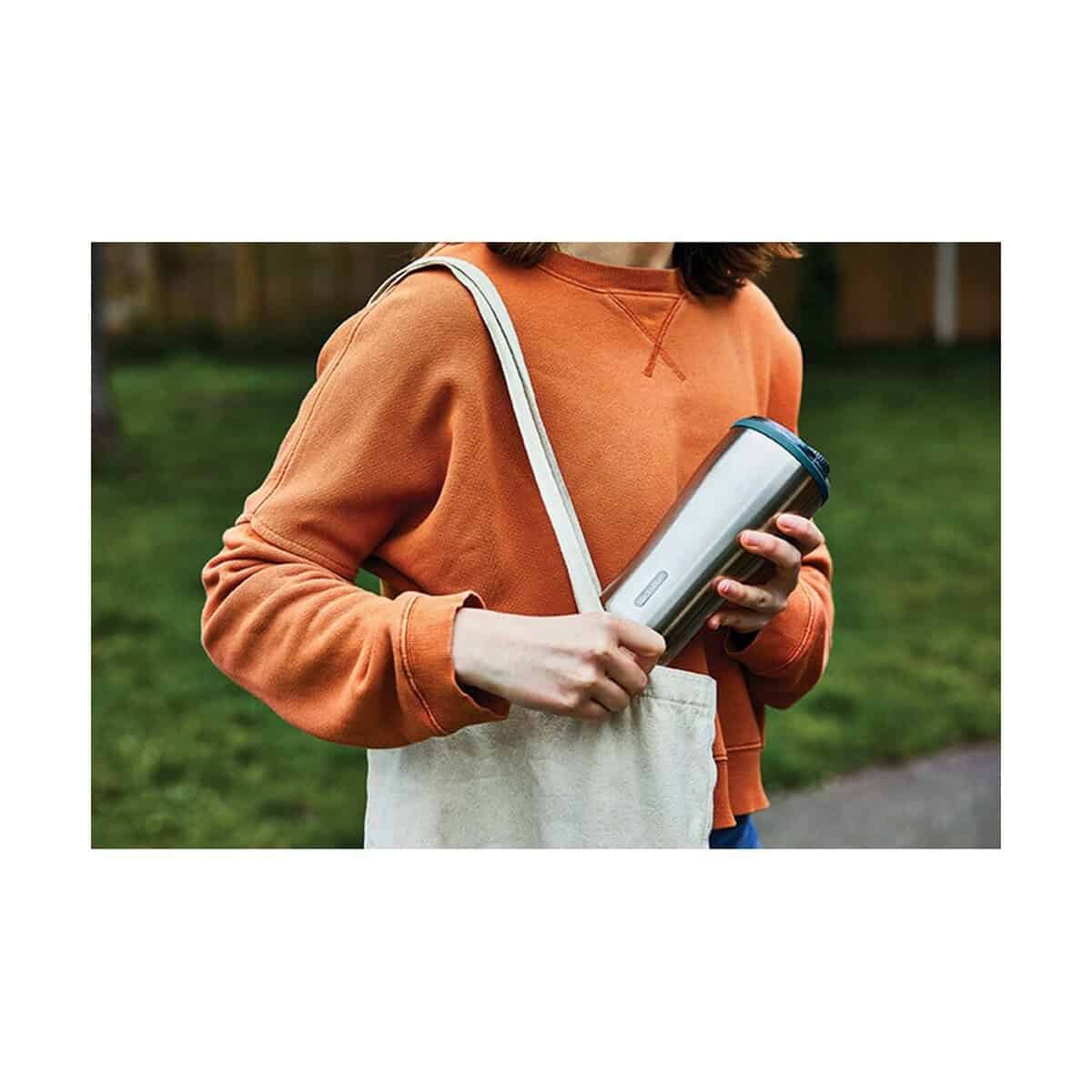 Kubek termiczny 600 ml Black+Blum to znakomite połączenie minimalistycznego designu i najwyższej funkcjonalności, które sprawi, że każdy łyk kawy czy herbaty będzie prawdziwą przyjemnością 😊. Wykonany z odpornej na uszkodzenia stali nierdzewnej oraz bezpiecznego dla zdrowia tritanu, wyposażony w podwójne ścianki z próżnią w klasie termicznej B, utrzymuje temperaturę gorących napojów przez wiele godzin, a zimnych jeszcze dłużej. Praktyczny uchwyt i wieczko z zamknięciem do obsługi jedną ręką czynią go perfekcyjnym towarzyszem zarówno w biurze, jak i w podróży. Dzięki kompaktowym wymiarom 9,1 × 9,1 × 20,3 cm mieści się w większości uchwytów samochodowych, a pojemność 600 ml pozwala cieszyć się ulubionym napojem bez ciągłego dolewania.
