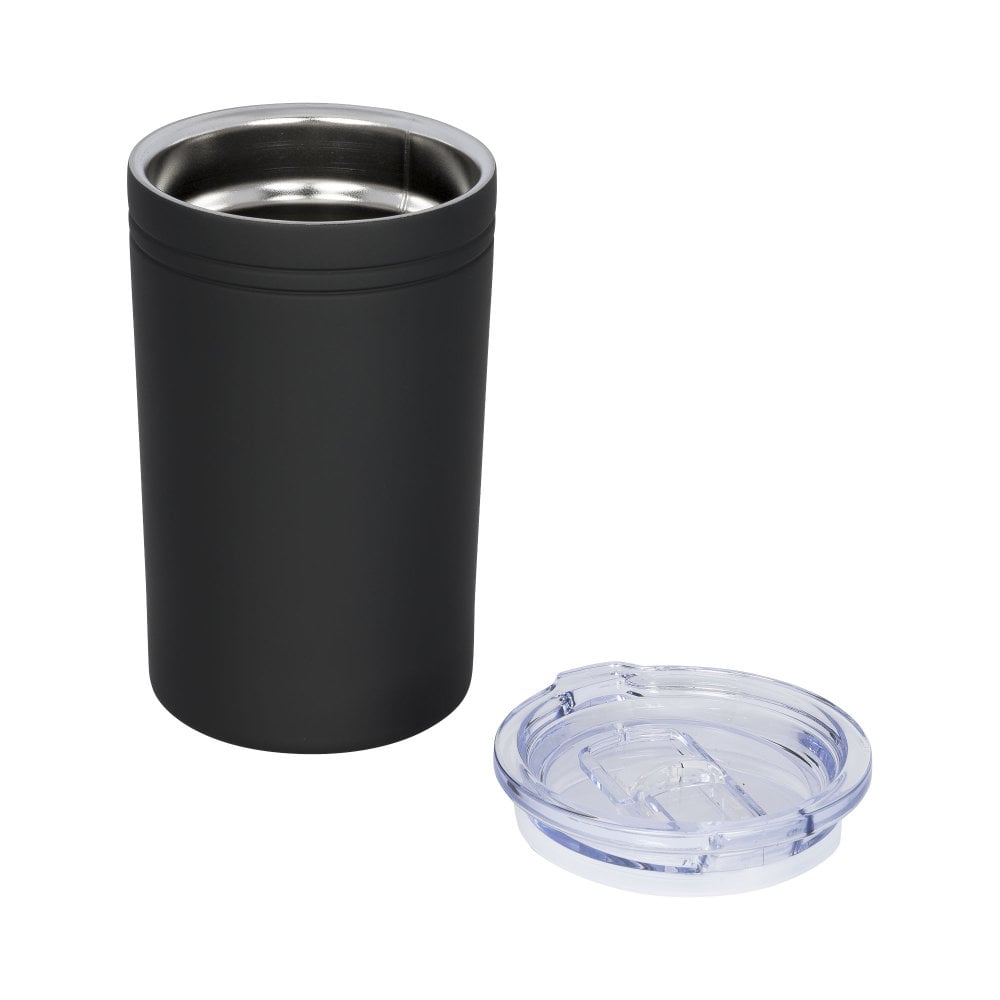 Kubek o podwójnych ściankach, izolowany próżniowo, to idealny produkt do transportu napojów. Przeźroczyste, wciskane wieczko z przesuwanym zamknięciem zapewnia trwałe utrzymanie temperatury i zabezpiecza napój przed wyciekiem. Używając go jako termosu, napój będzie ciepły przez kilka godzin, a jako kubka będzie się cieszyć przyjemnie schłodzonym napojem. Pojemność 330ml pozwala na wygodne wypicie napoju bez konieczności dolewania. Ten doskonale wyglądający i łatwy w użyciu kubek to idealne rozwiązanie do przenoszenia napojów.