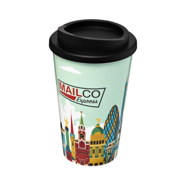 Ten kubek to idealne rozwiązanie dla każdego, kto szuka trwałego i zawijanego wzorem izolowanego kubka z zakręcaną pokrywą odporną na zalanie. Kubek cechuje się pełnokolorowym wzorem dopasowanym do produktu, a jego pojemność wynosi 350 ml. Użytkownik może mieszać i łączyć kolory, aby stworzyć swój idealny kubek. Co więcej, kubek jest zgodny z EN12875-1, a jego wykonanie miało miejsce w Wielkiej Brytanii. Dodatkowo, można myć go w zmywarce i podgrzewać w kuchence mikrofalowej.