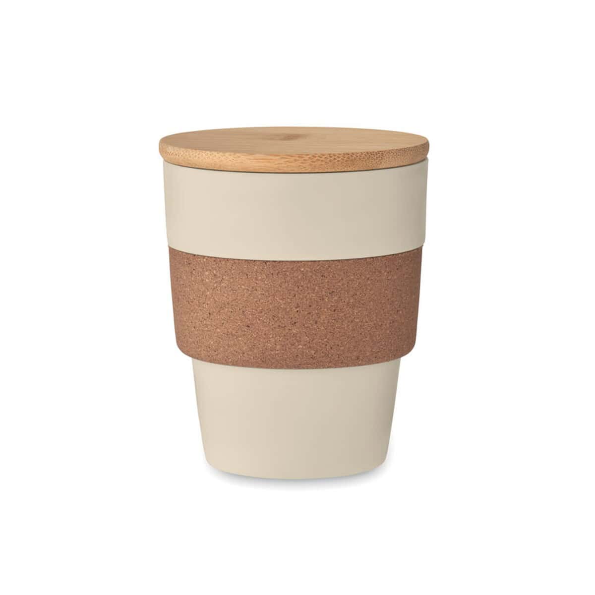 Ten praktyczny gadżet sprawdzi się w promocji branży gastronomicznej, ekologicznej, IT, beauty, a nawet w segmencie fitness. W biurze będzie nie tylko ozdobą biurka, ale także funkcjonalnym towarzyszem codziennych spotkań, natomiast podczas targów czy konferencji podkreśli odpowiedzialne podejście marki do środowiska. Jako kubek jednościenny potrafi przenosić ciepło, dlatego korkowa opaska chroni dłonie, a bambusowa pokrywka zapobiega przypadkowemu rozlaniu – to praktyczne cechy produktu, które Twoi odbiorcy docenią 🙂.