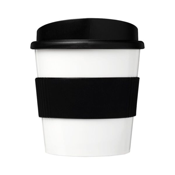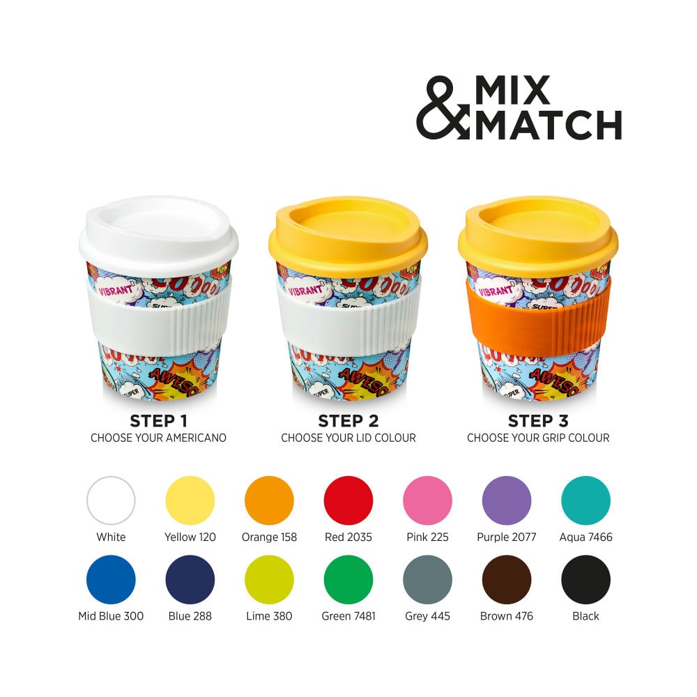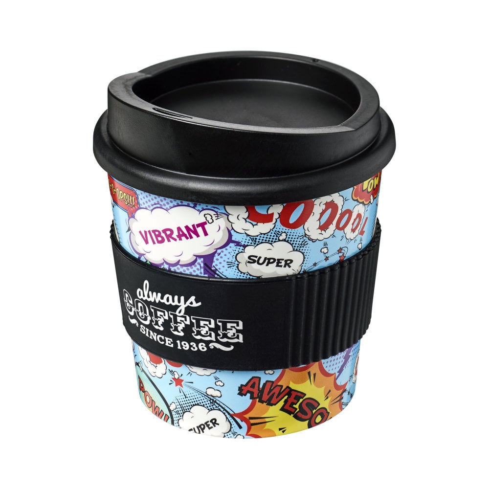 Nasz jednowarstwowy, izolowany kubek z dociskaną pokrywą odporną na zalanie i silikonowym uchwytem jest doskonałym rozwiązaniem dla osób, które lubią kawę w podróży. Kubek zmieści się w większości ekspresów do kawy. Wykończenie kubka charakteryzuje pełnokolorowy, zawijany wzór dopasowany do produktu, dzięki czemu jest trwały i zgodny z EN12875-1. Nie musisz się martwić o zmywanie i przechowywanie – jest on odpowiedni do mycia w zmywarce i podgrzewania w kuchence mikrofalowej. Pojemność wynosi 250 ml, a możliwość mieszania i łączenia kolorów pozwala stworzyć idealny kubek. Wszystko wykonano w Wielkiej Brytanii.