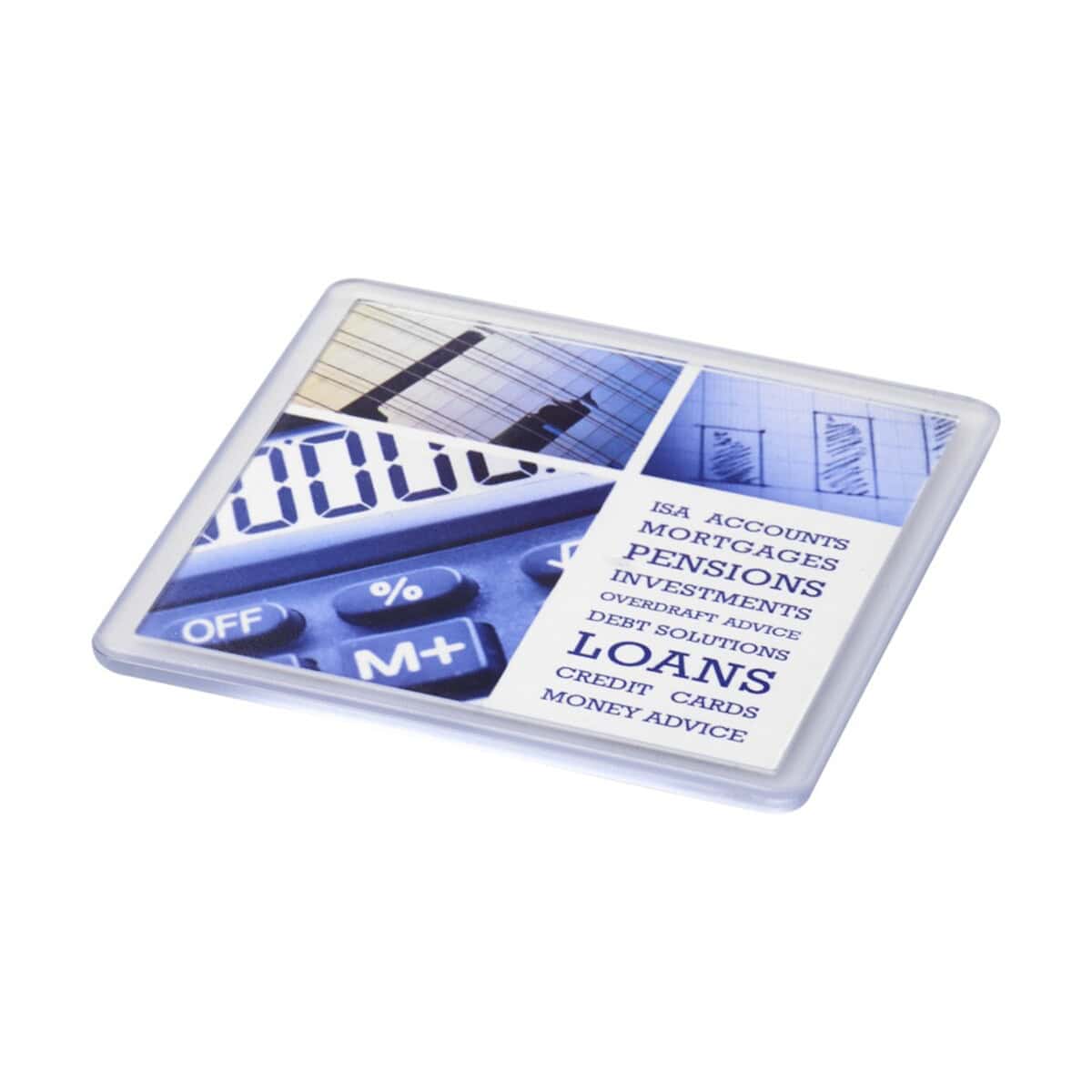 Kwadratowa podkładka Ellison wykonana z tworzywa sztucznego z papierową wkładką