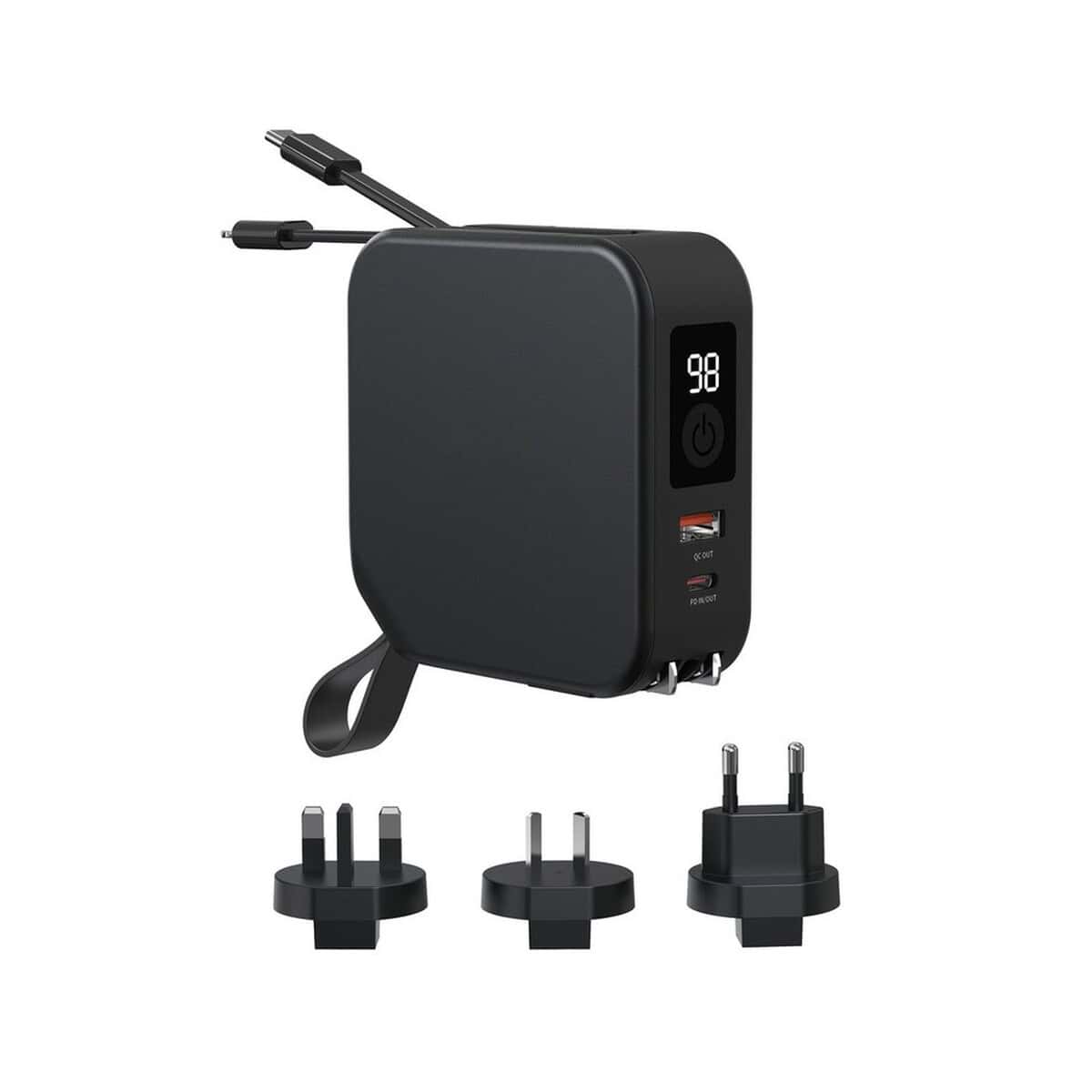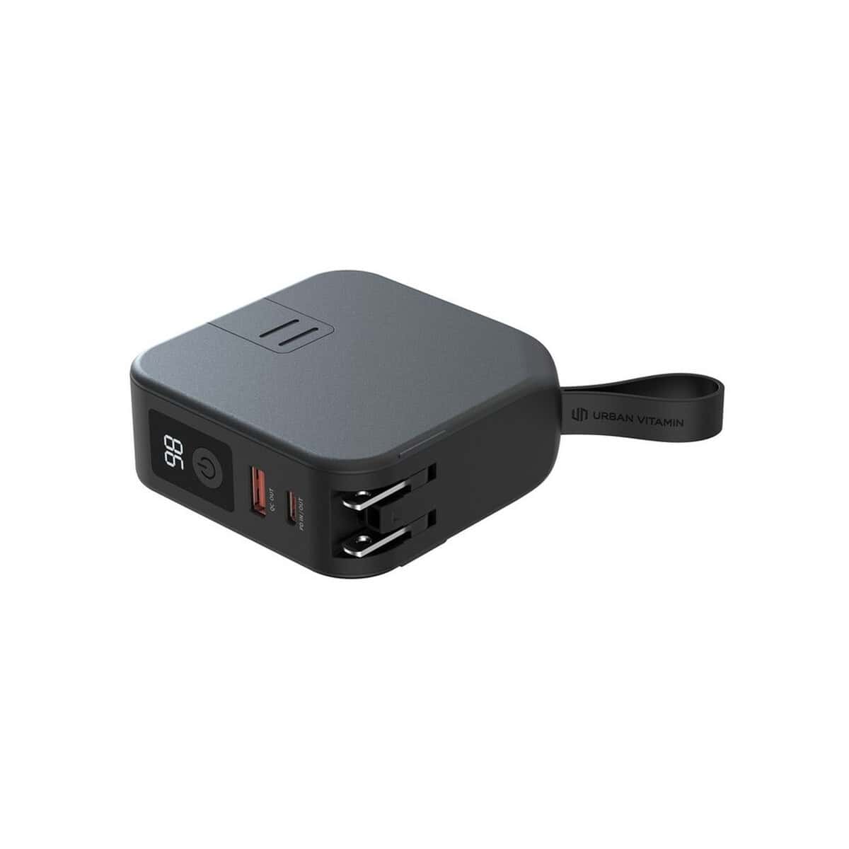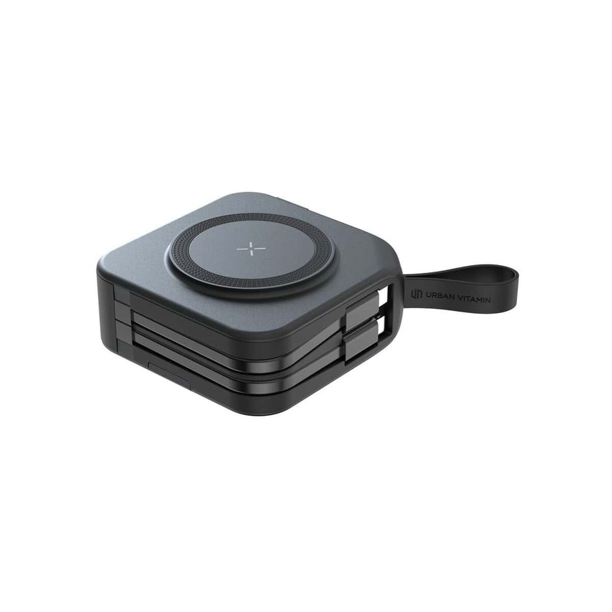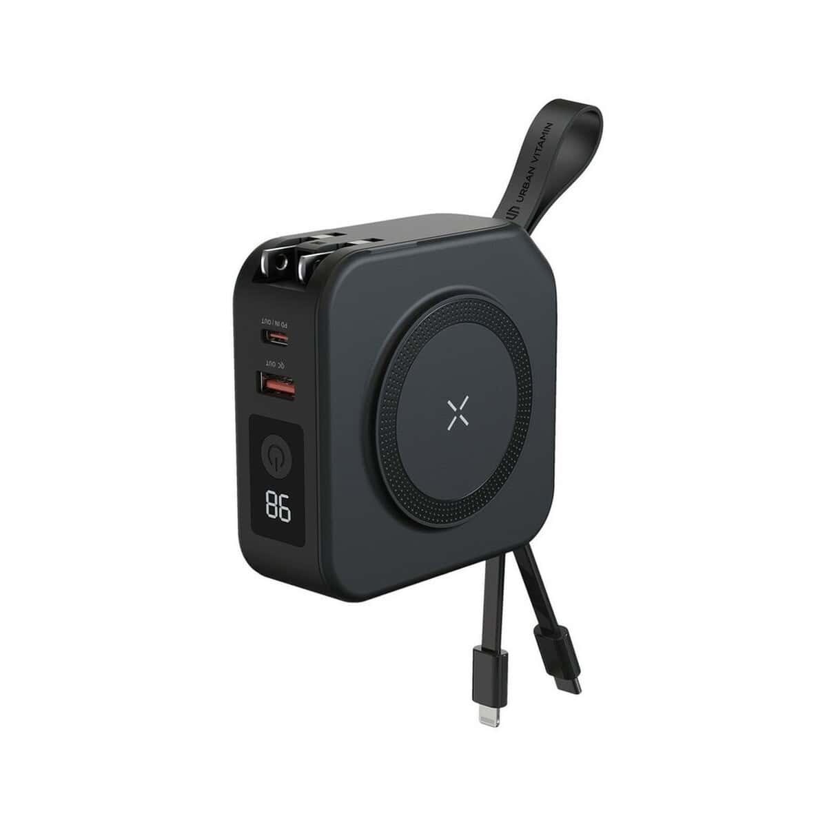 Ładowarka 5 w 1 Urban Vitamin Saratoga to znakomite, wielofunkcyjne centrum energii, które łączy w sobie power bank 10000 mAh, ładowarkę ścienną, magnetyczną ładowarkę bezprzewodową 15 W, adapter podróżny z wtyczkami na pięć kontynentów oraz poręczny stojak na telefon. Ta kompaktowa kostka (8,6 × 8,6 × 3,5 cm) z trwałego ABS i TPE, utrzymana w eleganckiej czerni, waży jedynie ułamek wagi tradycyjnych rozwiązań, a jej ślad węglowy to zaledwie 2,51 kg CO₂, co czyni ją przyjazną dla planety. Dzięki wbudowanym kablom, wyjściu USB i USB-C oraz kompatybilności z telefonami obsługującymi ładowanie indukcyjne możesz ładować nawet pięć urządzeń jednocześnie – w biurze, w samolocie czy na konferencji 🙂.