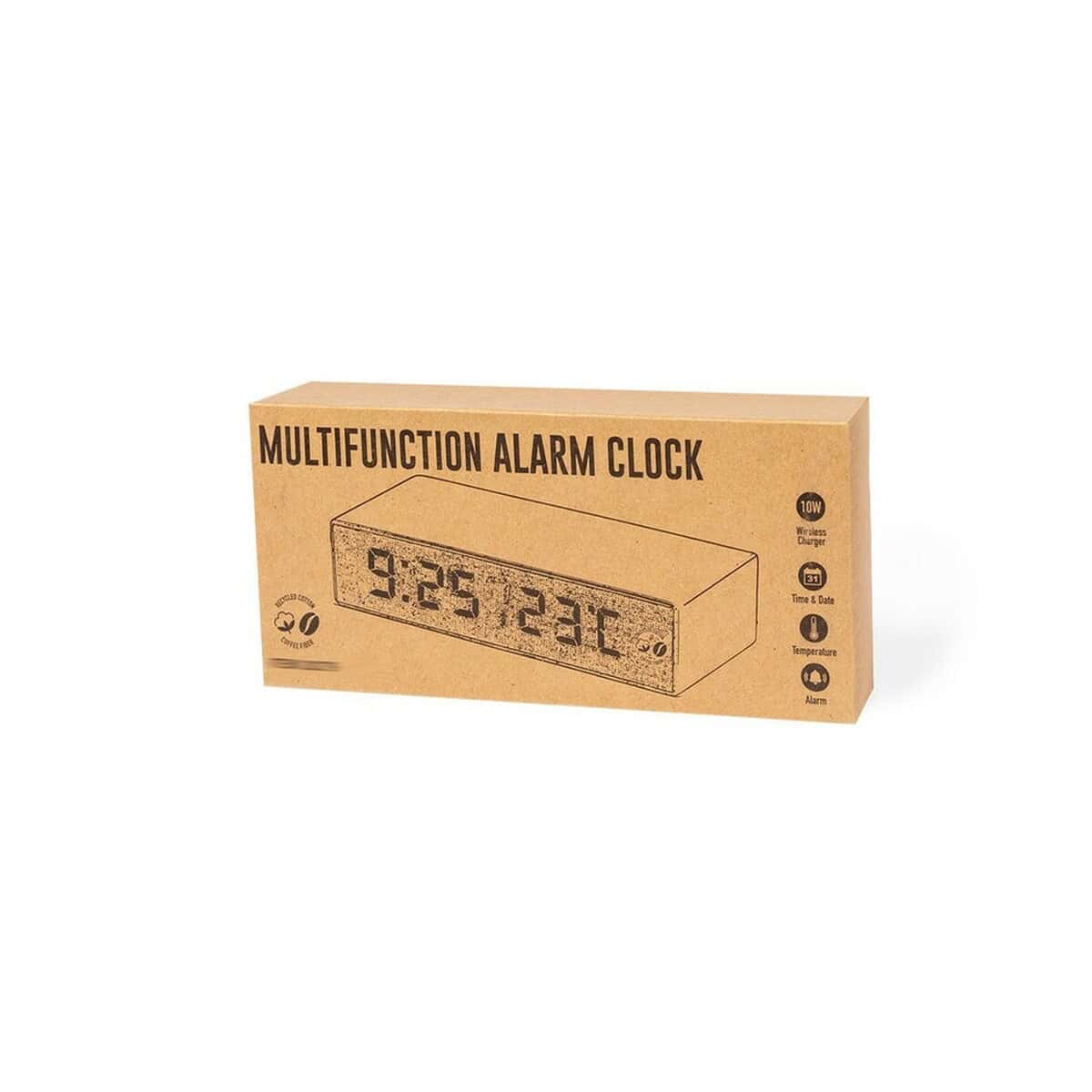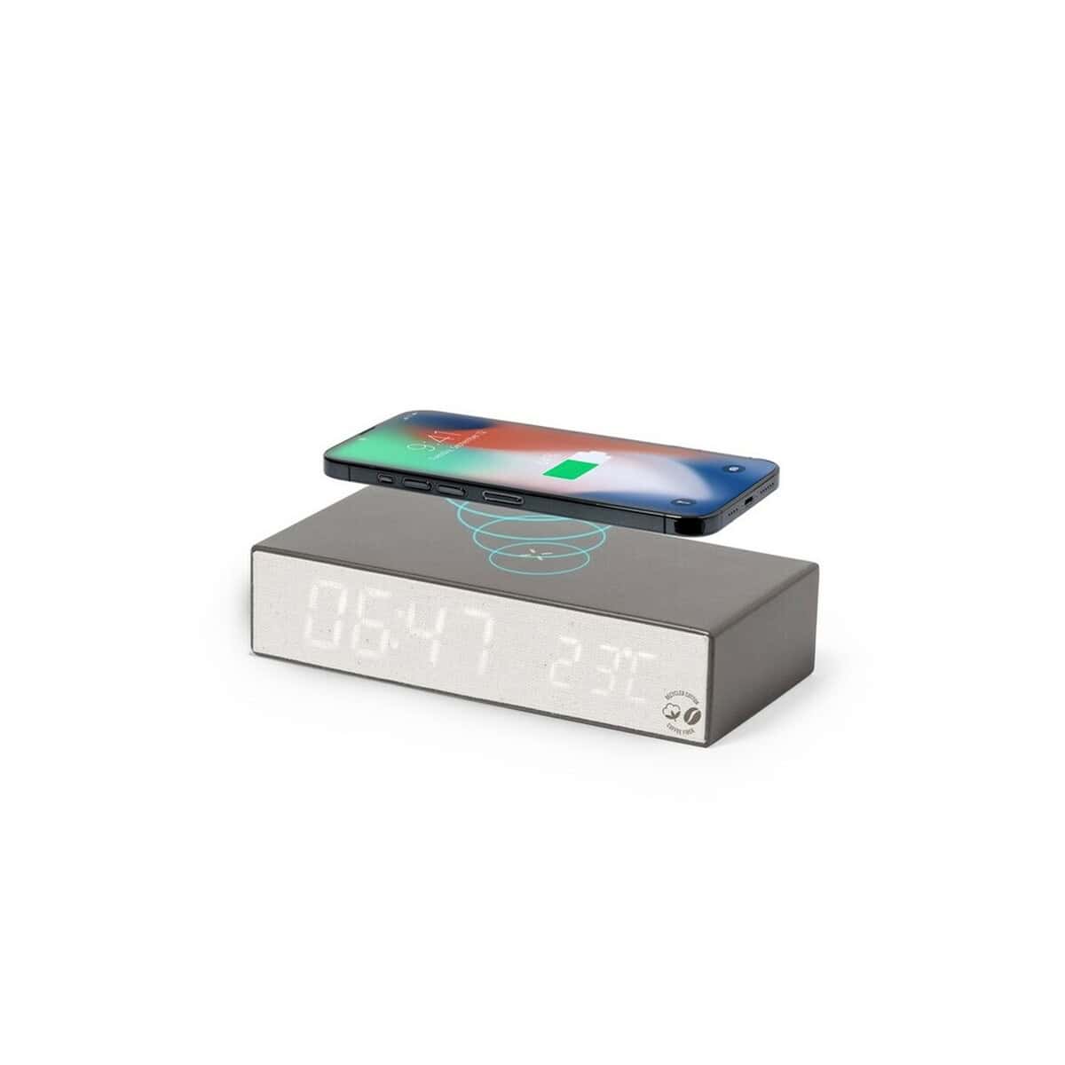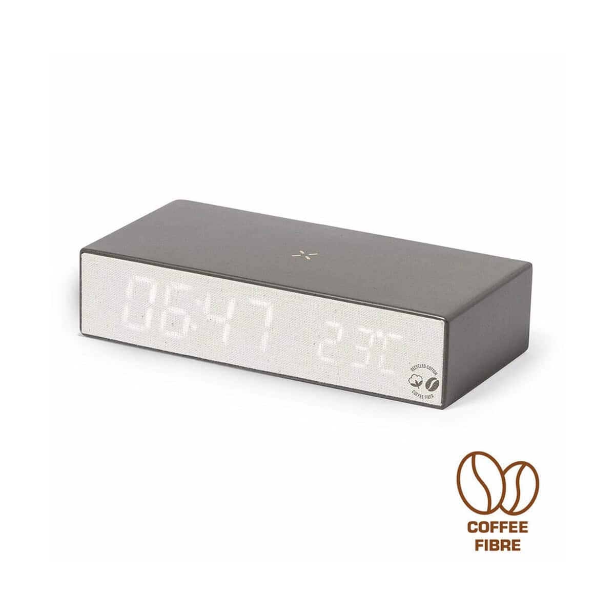 Ładowarka bezprzewodowa 10W z łusek kawowych i bawełny z recyklingu, wielofunkcyjny zegar cyfrowy
