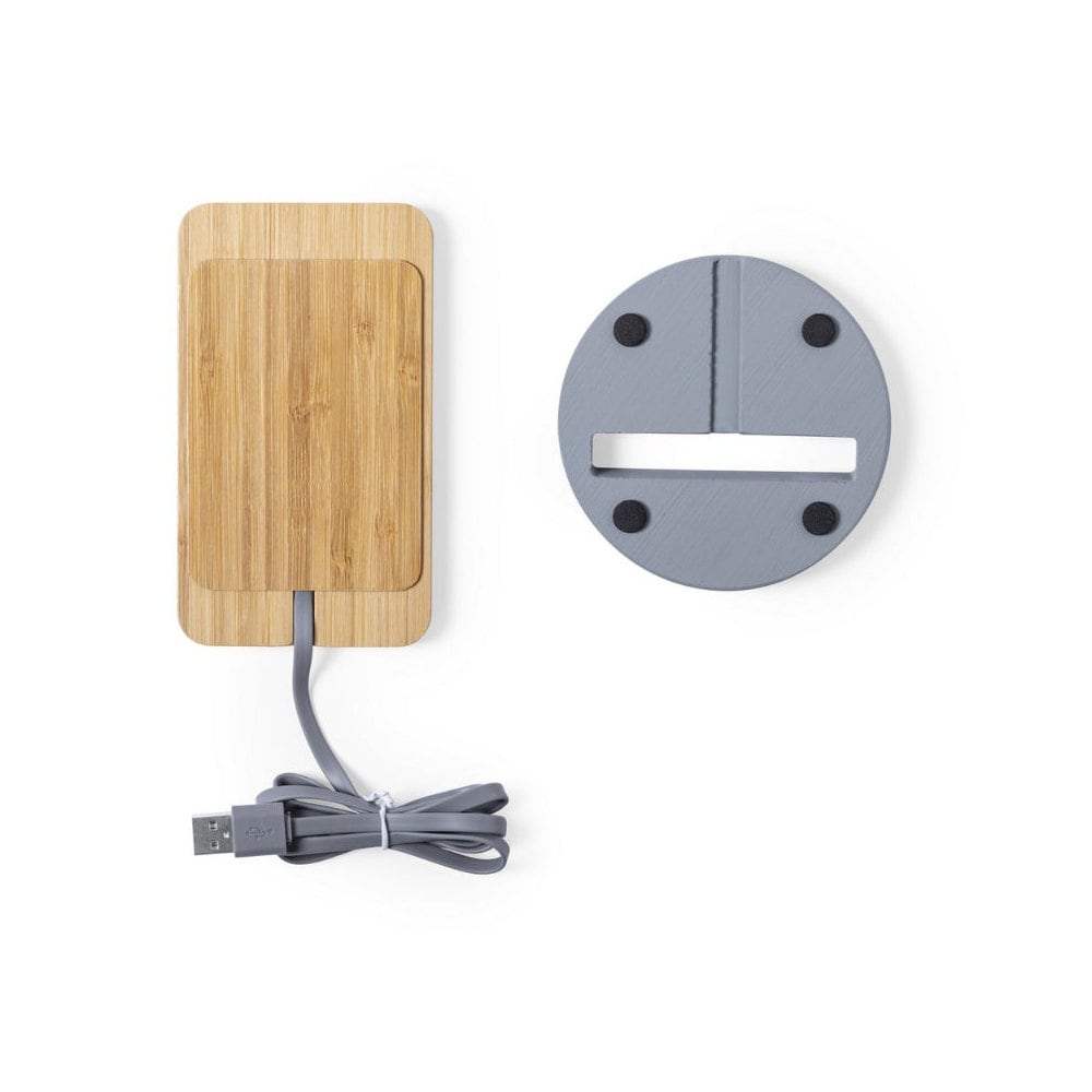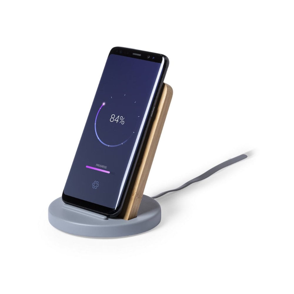 • Bezprzewodowa ładowarka indukcyjna Loop o mocy 10W z tworzywa sztucznego pochodzącego z recyklingu ze stojakiem na telefon