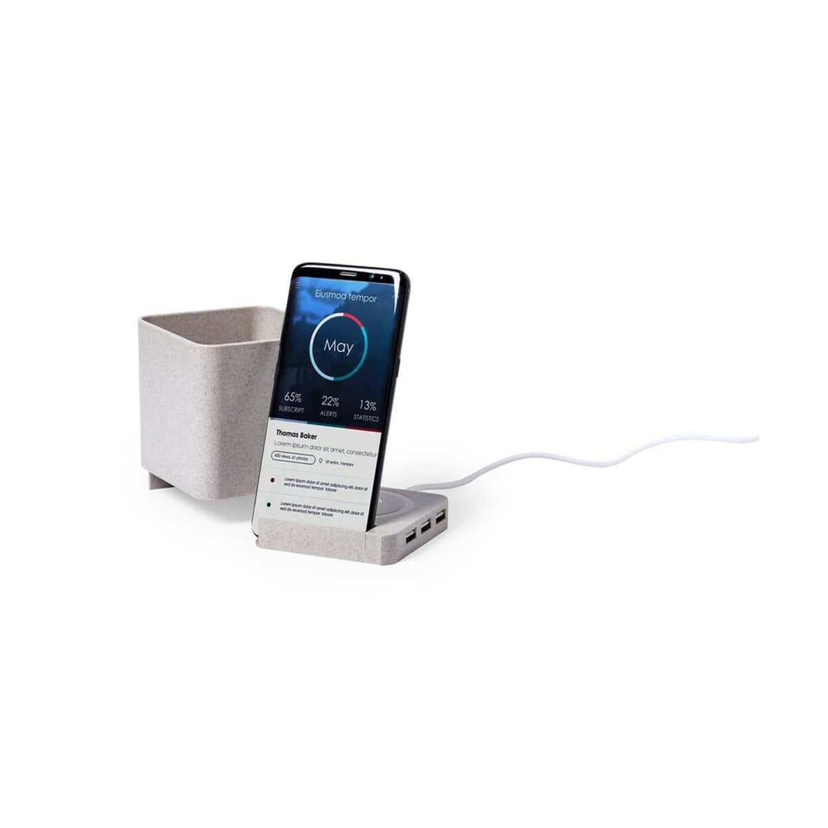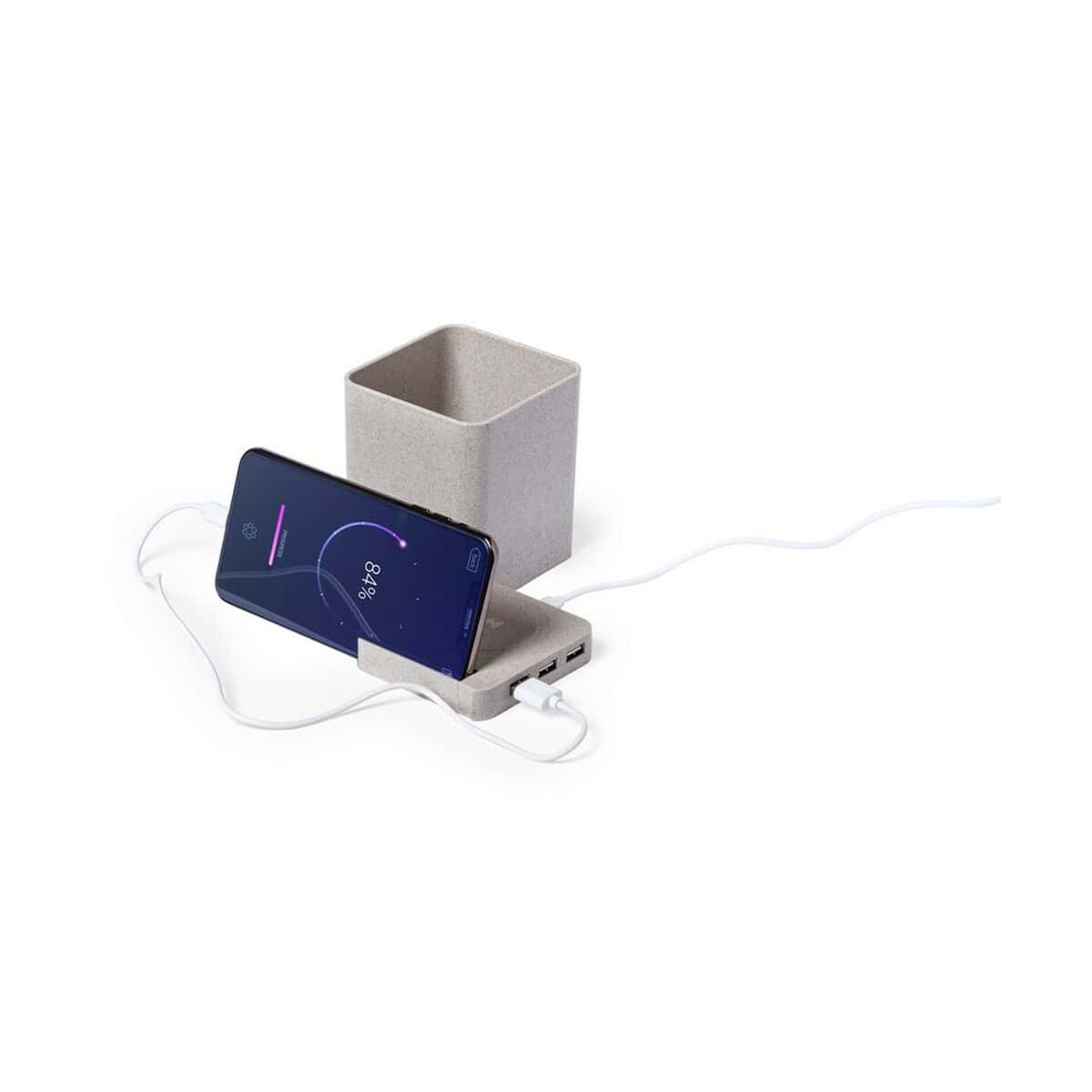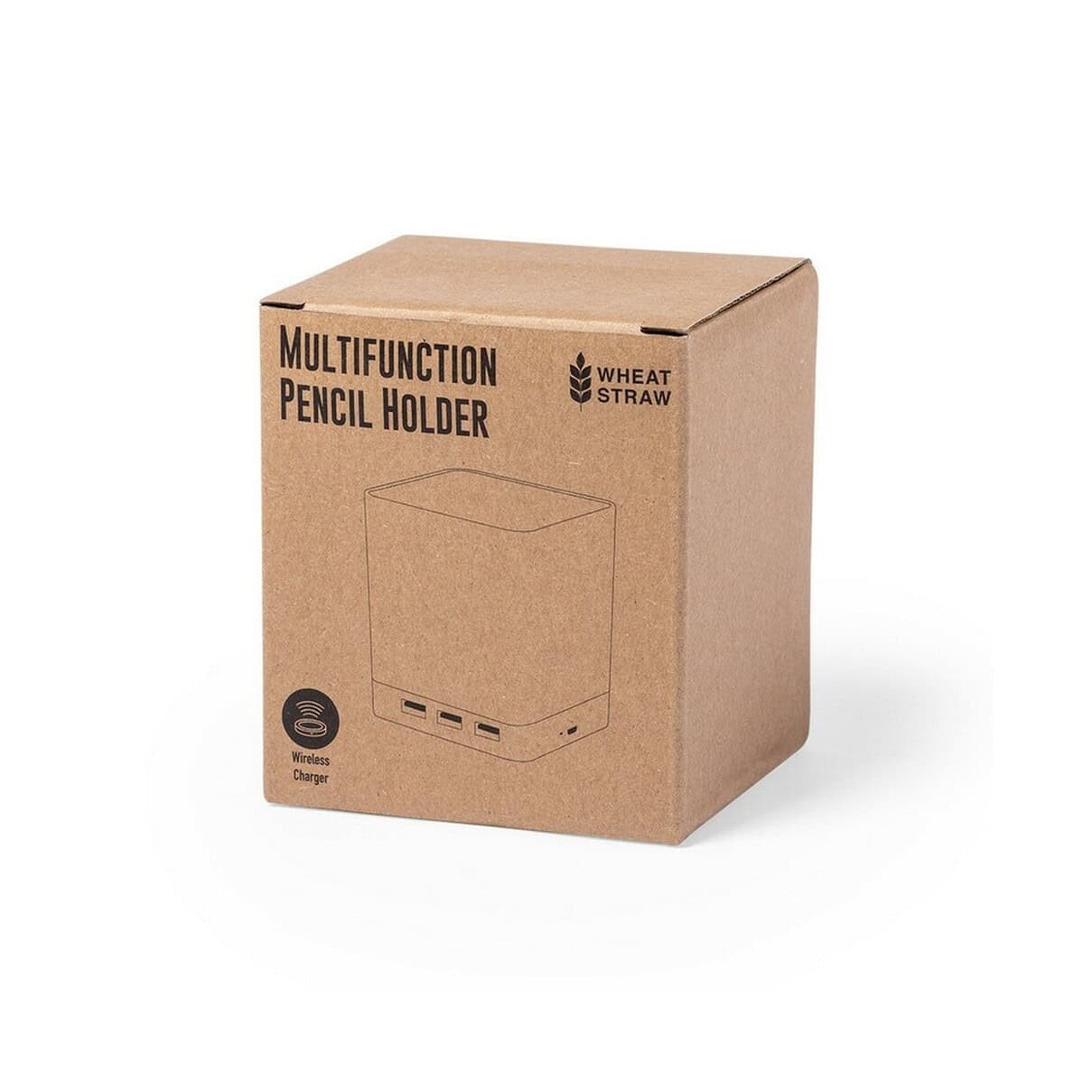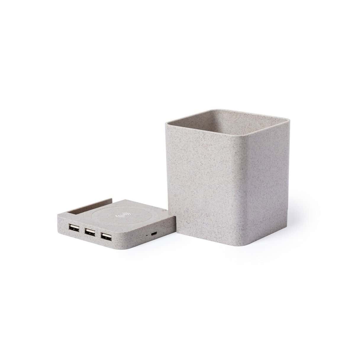 Ładowarka bezprzewodowa 5W ze słomy pszenicznej, hub USB 2.0, pojemnik na przybory do pisania, stojak na telefon