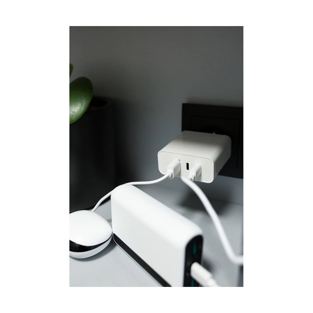 Trzy złącza (USB-A 18 W oraz dwa USB-C 45 W + 20 W) gwarantują równoczesne ładowanie laptopa, smartfona i słuchawek. Szeroki zakres wejściowy 100-240 V pozwala korzystać z urządzenia na całym świecie, co czyni go wręcz doskonałym towarzyszem wyjazdów targowych i konferencyjnych. Niewielkie wymiary 9,8 × 6 × 2,8 cm sprawiają, że Ładowarka ścienna | Altha bez problemu zmieści się w kieszeni torby na laptopa czy w organizerze kabli.