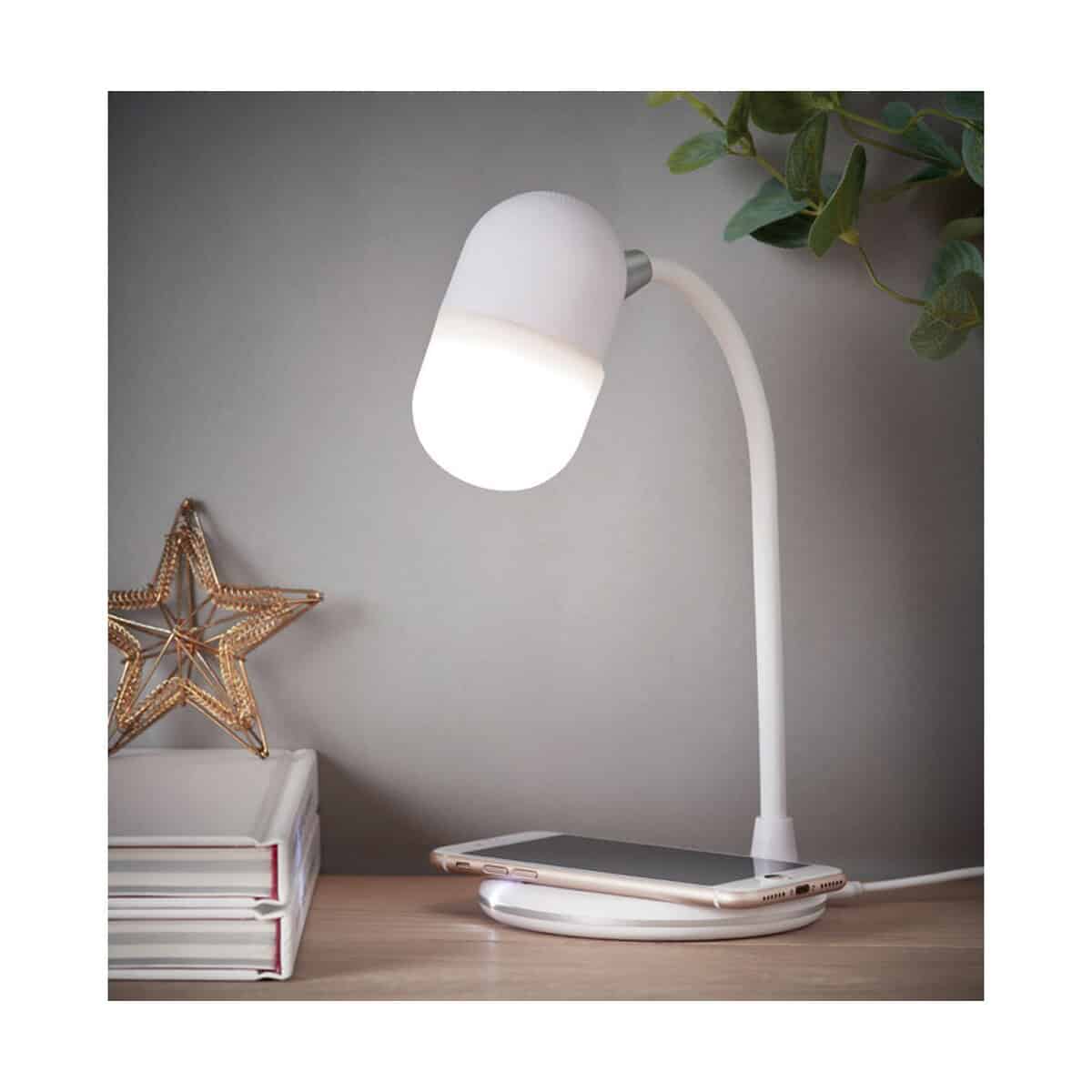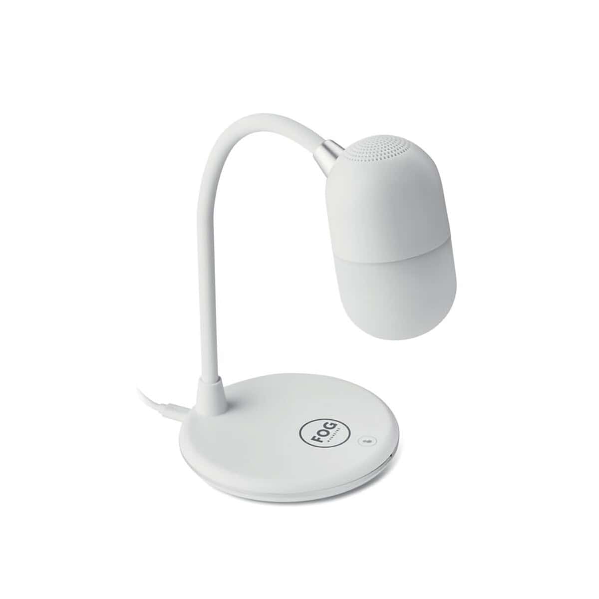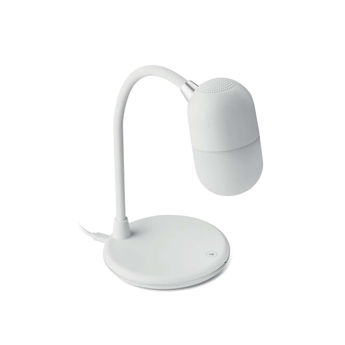 Lampka biurkowa CAPUSLA to wielofunkcyjne cudo, które łączy aż trzy praktyczne rozwiązania w jednym korpusie: nowoczesną lampkę LED, bezprzewodową ładowarkę oraz głośnik Bluetooth 4.2 🔊. Dzięki temu stanowi nie tylko elegancką ozdobę blatu, ale przede wszystkim wyjątkowy gadżet promocyjny dla Twojej firmy. Minimalistyczna forma z trwałego materiału ABS w klasycznej bieli i kompaktowe wymiary ø12 x 34 cm sprawiają, że bez trudu wpisuje się w każde biuro, recepcję hotelu czy domowe home office. Waga jedynie 0,515 kg pozwala łatwo przenosić urządzenie z miejsca na miejsce, co docenią mobilni pracownicy i studenci.