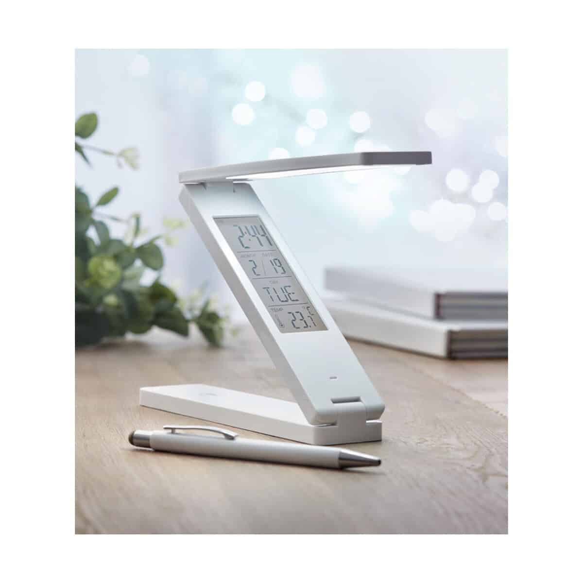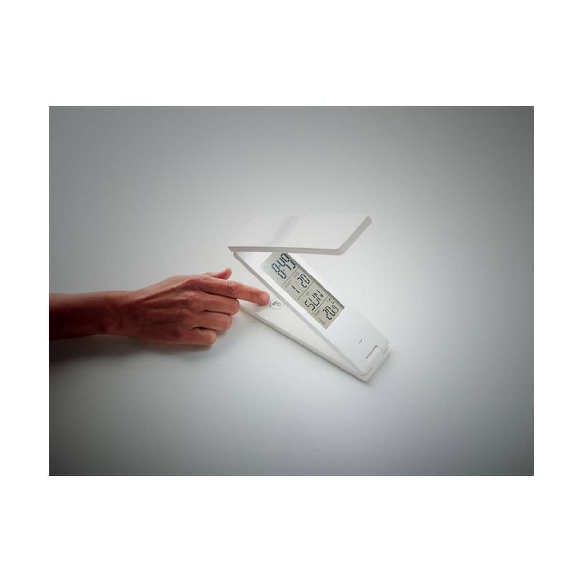 Największą zaletą, jaką oferuje Lampka biurkowa ZETA, jest jej wielofunkcyjność. Wbudowane 18 LED dają jasne, energooszczędne światło, które nie męczy wzroku i umożliwia komfortowe czytanie, pisanie lub projektowanie nawet późnym wieczorem. Zintegrowany ekran LCD wyświetla czas, datę, a także aktualną temperaturę otoczenia, co docenią osoby dbające o ergonomię miejsca pracy. Funkcja alarmu zadba o punktualność, a dołączona do zestawu bateria CR2032 sprawia, że z urządzenia można korzystać od razu po rozpakowaniu.