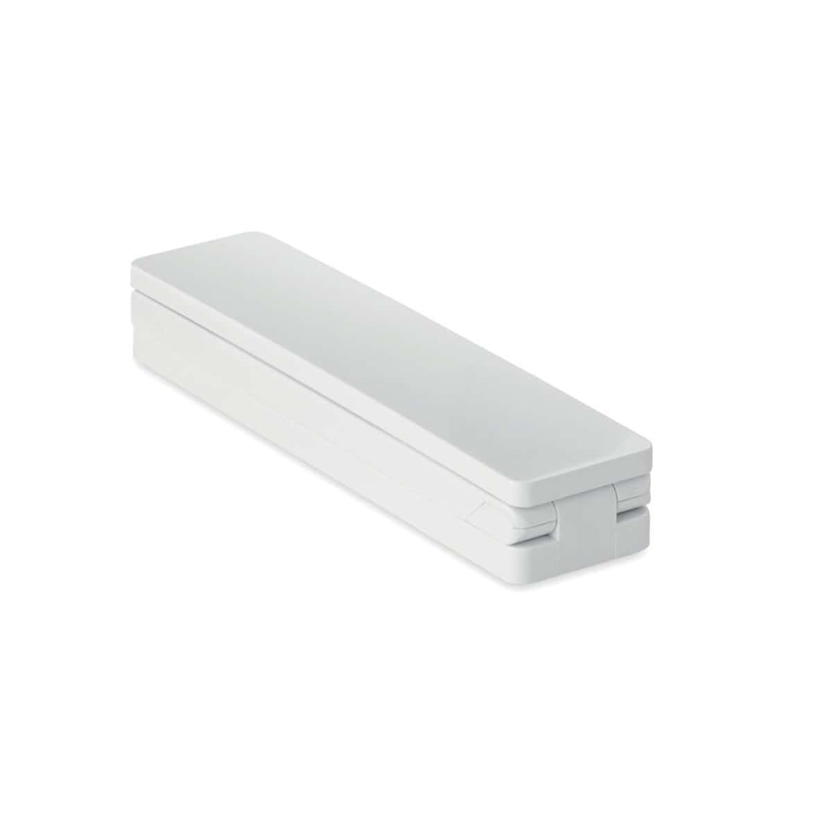 Dzięki płaskiej podstawie i składanej konstrukcji lampka stanowi znakomite pole dla Twojej firmy, by wyeksponować logo lub unikalny nadruk. To sprawia, że produkt błyskawicznie zmienia się w wartościowy upominek reklamowy – praktyczny gadżet, który użytkownicy trzymają na widoku przez cały dzień. Powierzchnia z wytrzymałego tworzywa ABS gwarantuje, że nadrukowane elementy zachowają wyrazistość przez długi czas, nawet przy częstym składaniu i rozkładaniu ramienia lampki.