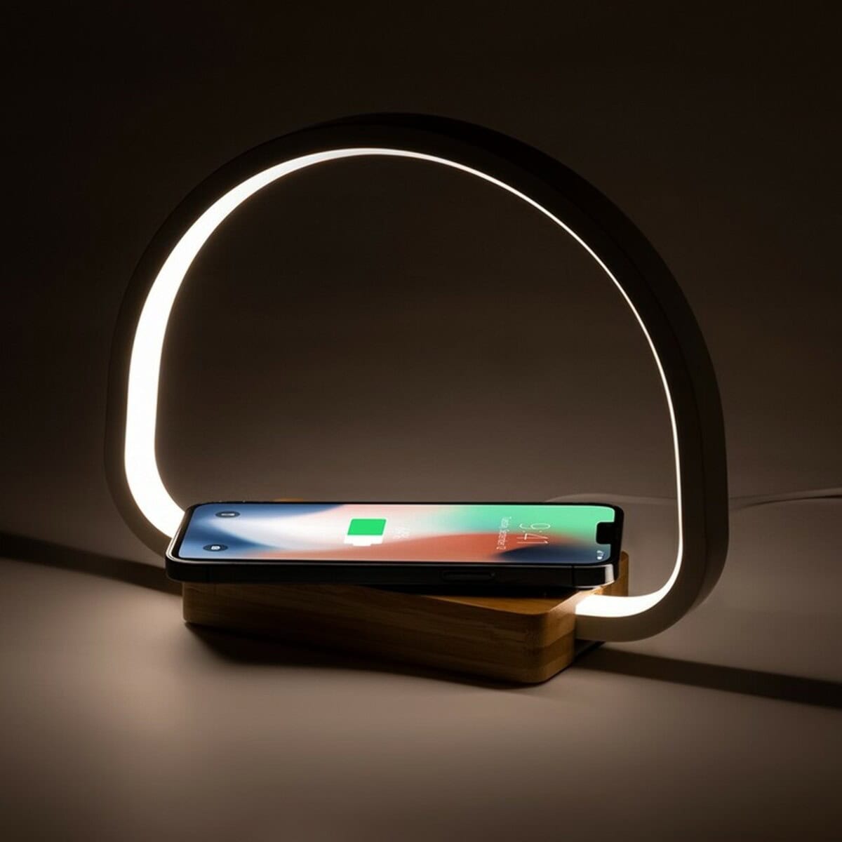 Lampka na biurko, bambusowa ładowarka bezprzewodowa 10W
