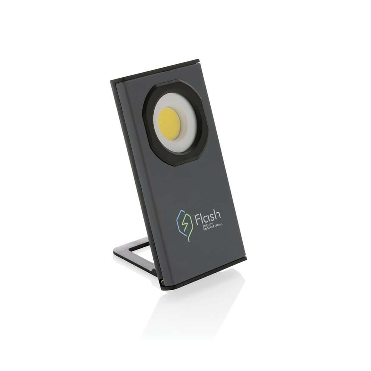 Lampka warsztatowa COB Gear X, ładowana przez USB to również znakomity gadżet reklamowy – idealny do kampanii firm z branż motoryzacyjnej, budowlanej, logistycznej, energetycznej czy rowerowej. Duża, płaska powierzchnia obudowy sprawia, że Twój nadruk lub logo będzie doskonale widoczne nawet w słabym oświetleniu. Umieszczony z tyłu mocny magnes pozwala przytwierdzić lampkę do karoserii lub regału, uwalniając ręce i eksponując identyfikację wizualną dla Twojej firmy. 🔧